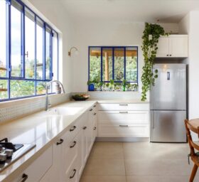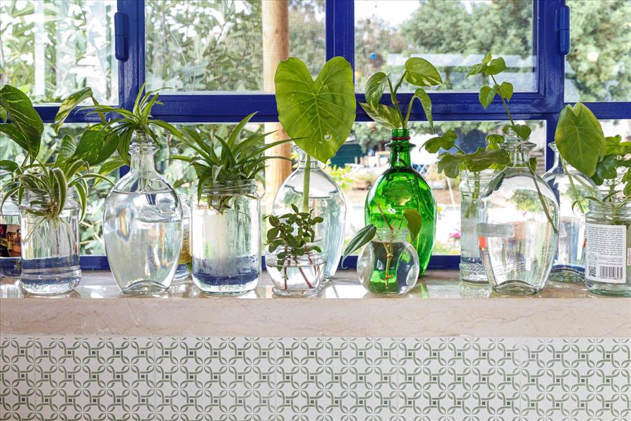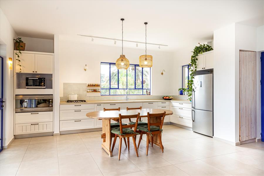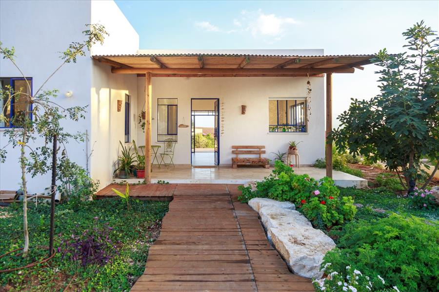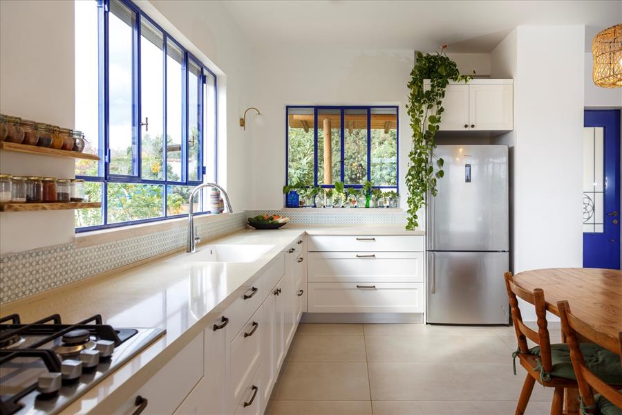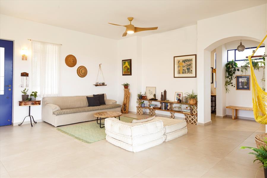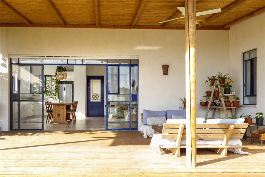 בית בסגנון יווני מזרח תיכוני שהושפע משנים של עבודה ומגורים באגן הים התיכון.