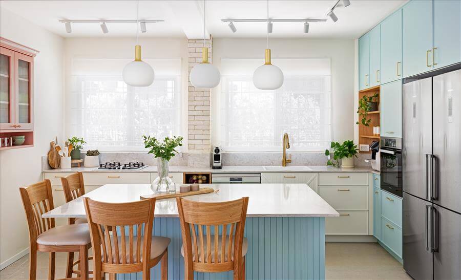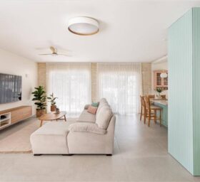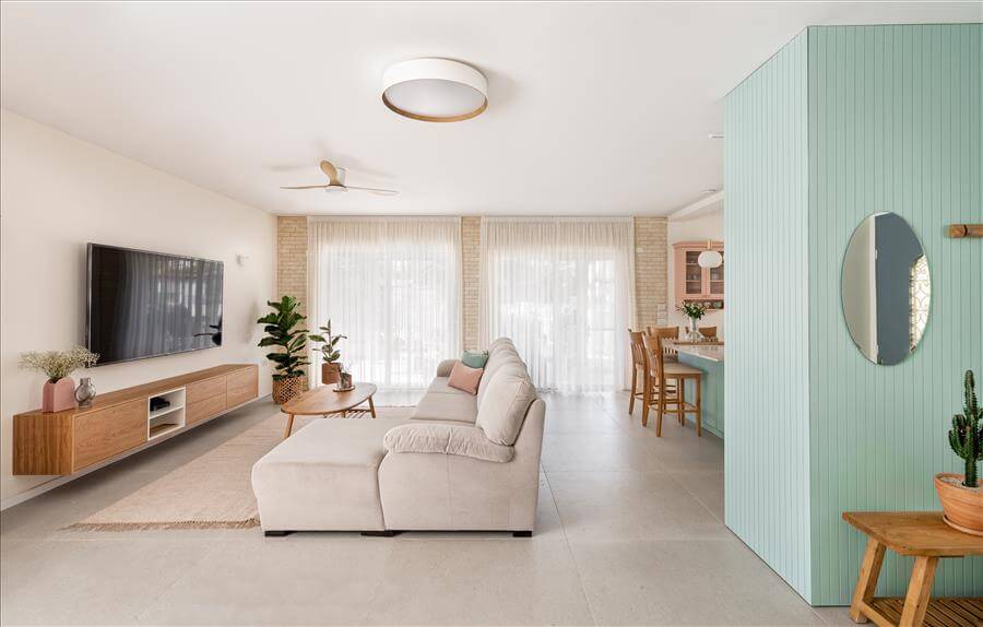 בית בסגנון כפרי עם צבעוניות נעימה.