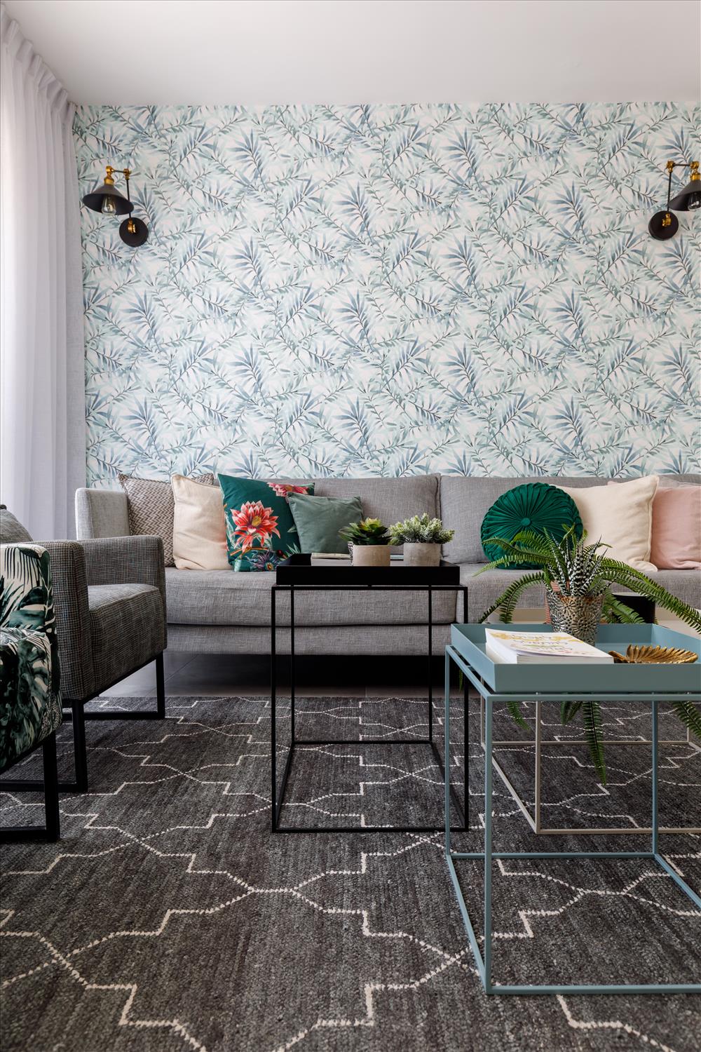 בחרנו בטפט עלים לא שגרתי בקיר כוח שלנו והחלל הפך לייחודי ומעניין, שטיח שחור שמותאם לנגיעות השחורות בשאר הפריטים בחלל נותן קונטרסט וניגודיות מעניינת