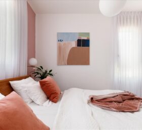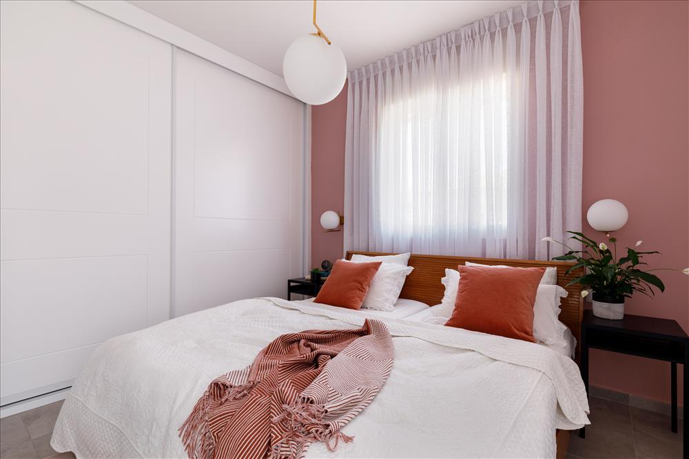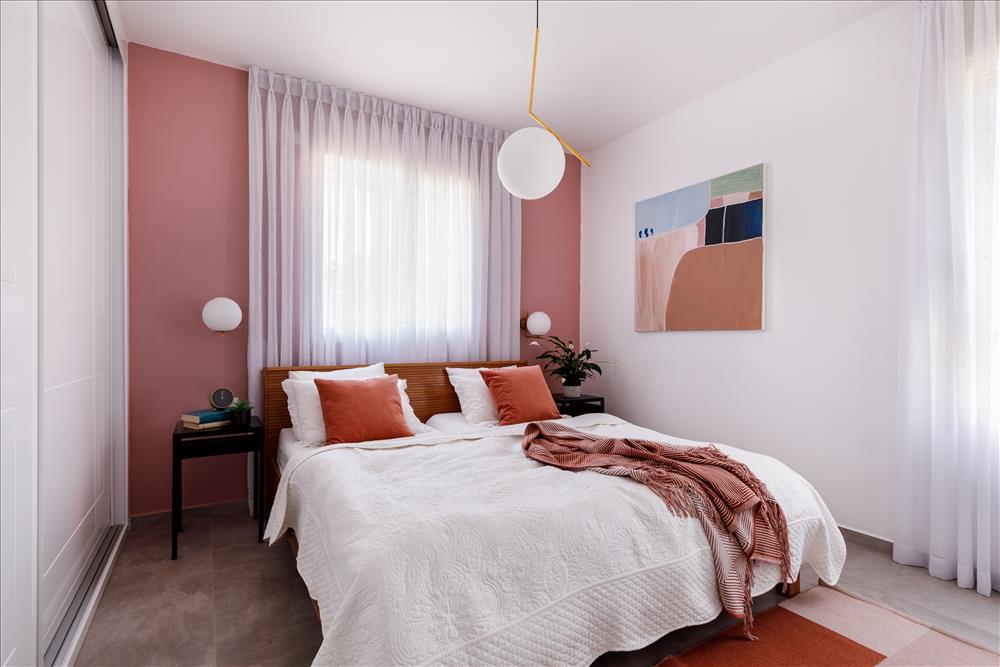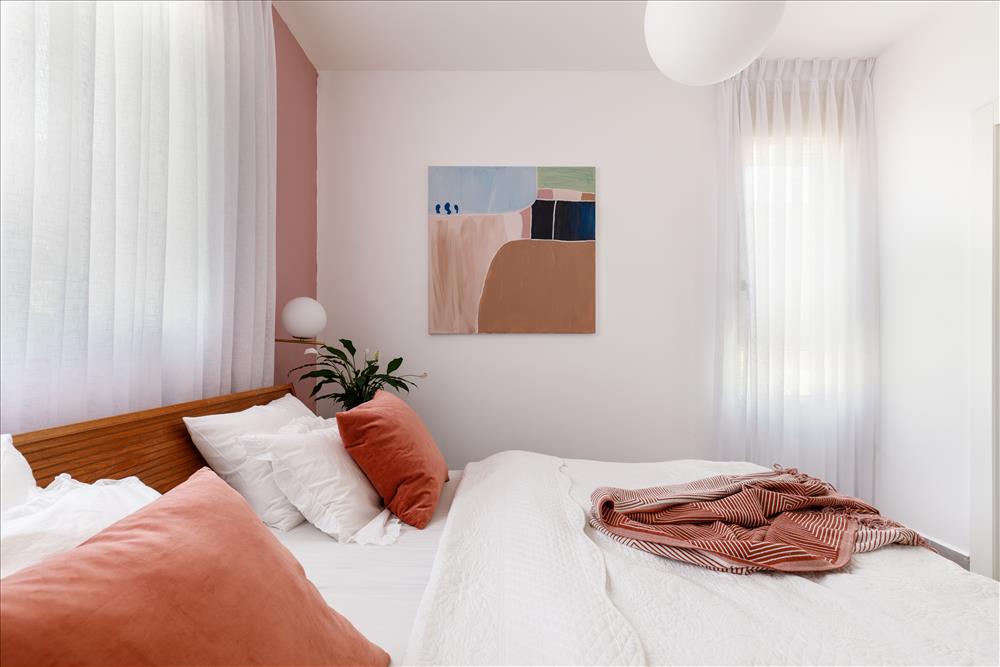 את חדר ההורים עיצבנו בצבעים מיוחדים ולא סטנדרטים החדר קיבל ייחודיות משלו שלא רואים בכל בית.