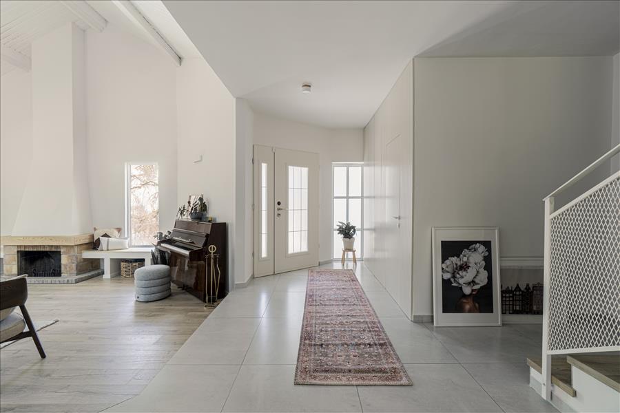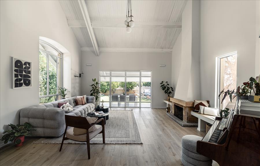 .הסגנון מודרני ונקי מצד אחד אבל עם נגיעות כפריות באיזור הקמין, בדגש על חומרים טבעיים – עץ, אבן, ברזל ובטון שעטופים בגינה מהממת.