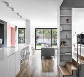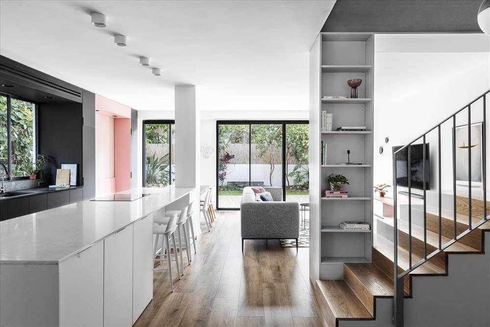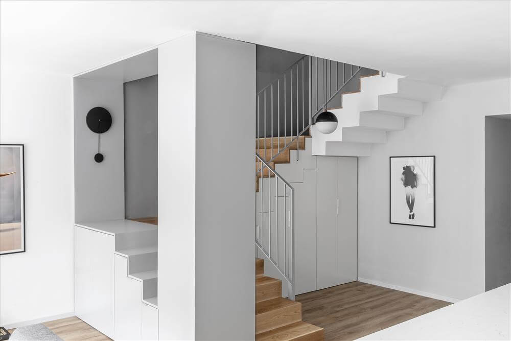 בנוסף, תוכננה לפרטים נגרות אומן בכל הקומה, אשר מקסמה את אפשרויות האחסון בחלל מבלי להעמיס על מראהו.