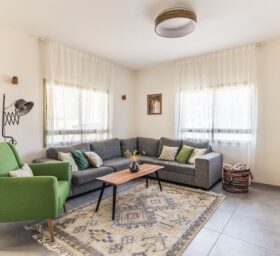 הדיירים ביקשו מרחב מואר וצבעוני שמייצר תחושה של  גודל ומרחב. לתוך חלל זה תוכנן מטבח המאפשר בישול משותף וארוח. בנוסף הושם דגש על פתרונות איחסון  חדר טיפולים וכן פינת עבודה במרחבהציבורי. דגש הושם על עיצוב המותאם לתקציב.