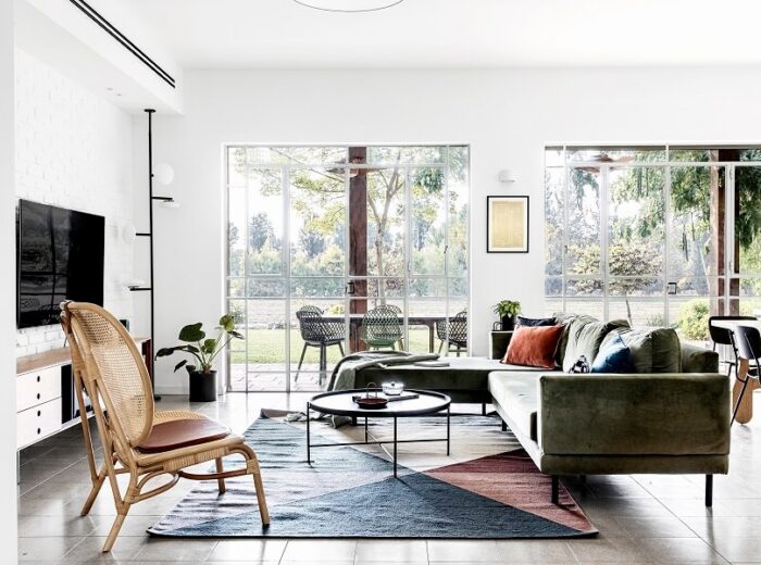 בית פרטי, אי שם במושב בצפון השרון עבר מהפך מכפרי למודרני. מסגור לפתוח.