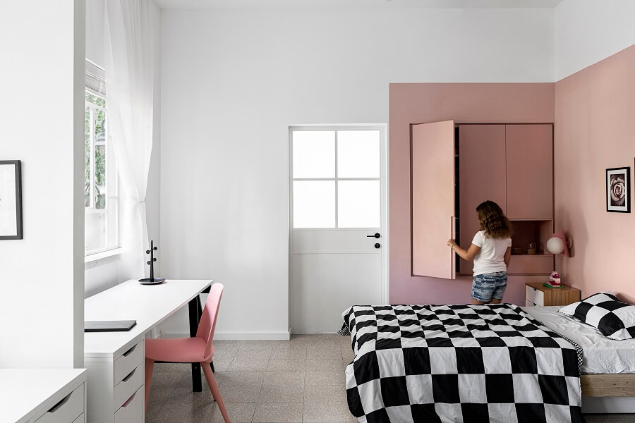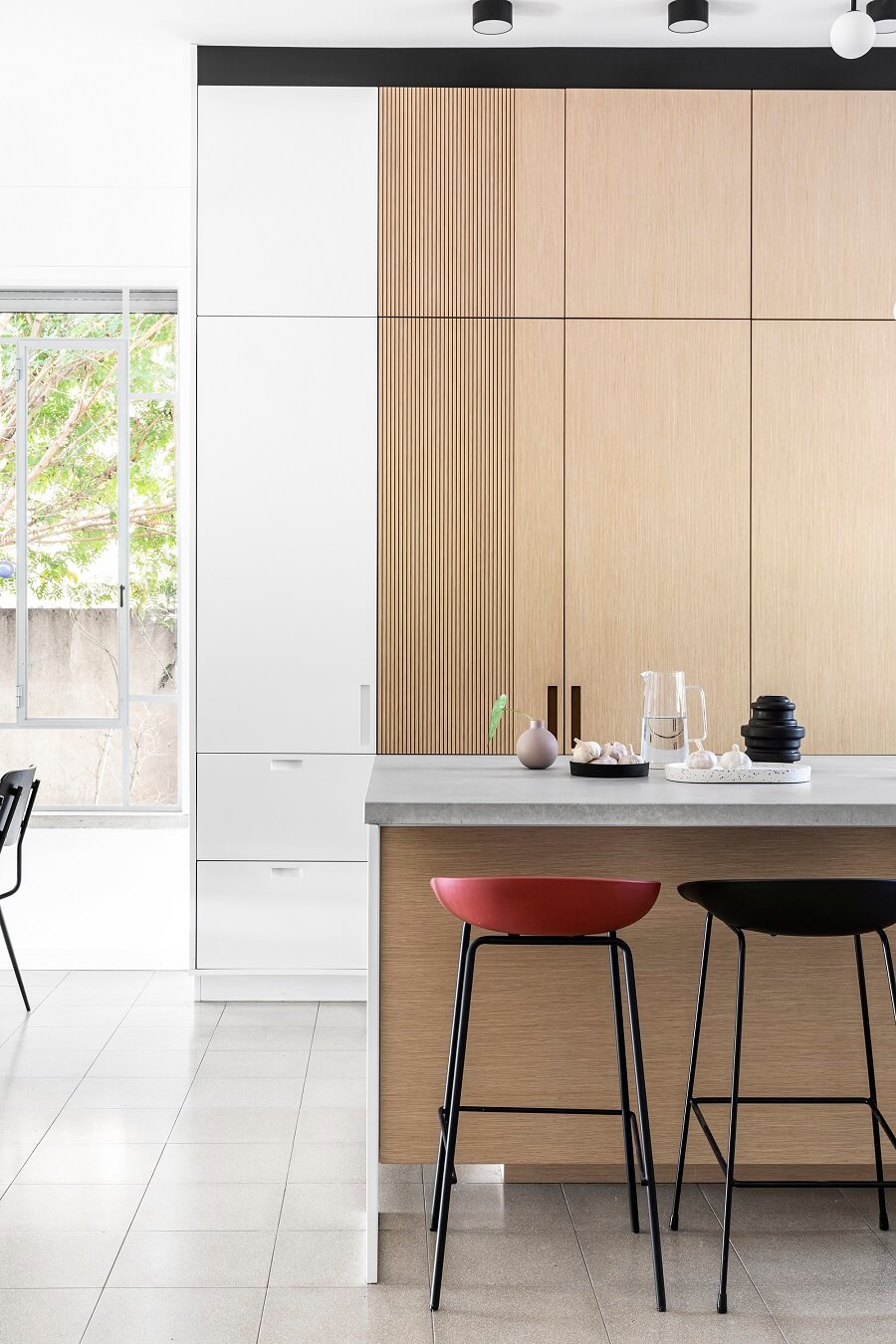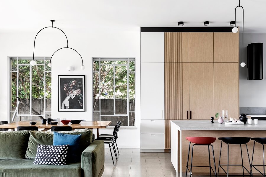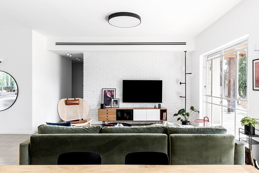 הקונספט העיצובי היה לייצר חלל רחב הנותן ביטוי למרחבים הירוקים שמאחורי הבית ולגינה הסובבת אותו. התכנון, כלל יצירת חדר ילדים לילדה הבכורה וחדר משותף לתאומות שניתן יהיה לחלקו בקלות לשניים נפרדים. כן, תוכננה יחידת המשרד הביתי בת 2 עמדות עבודה וכמובן, אזור חלל המגורים נפתח באמצעות שבירת קיר שהיווה מסתור למקרר ומטבח נגרות אומן המחמיא למרחב ומאפשר את הדגשת הטבע הניבט מכל עבר.