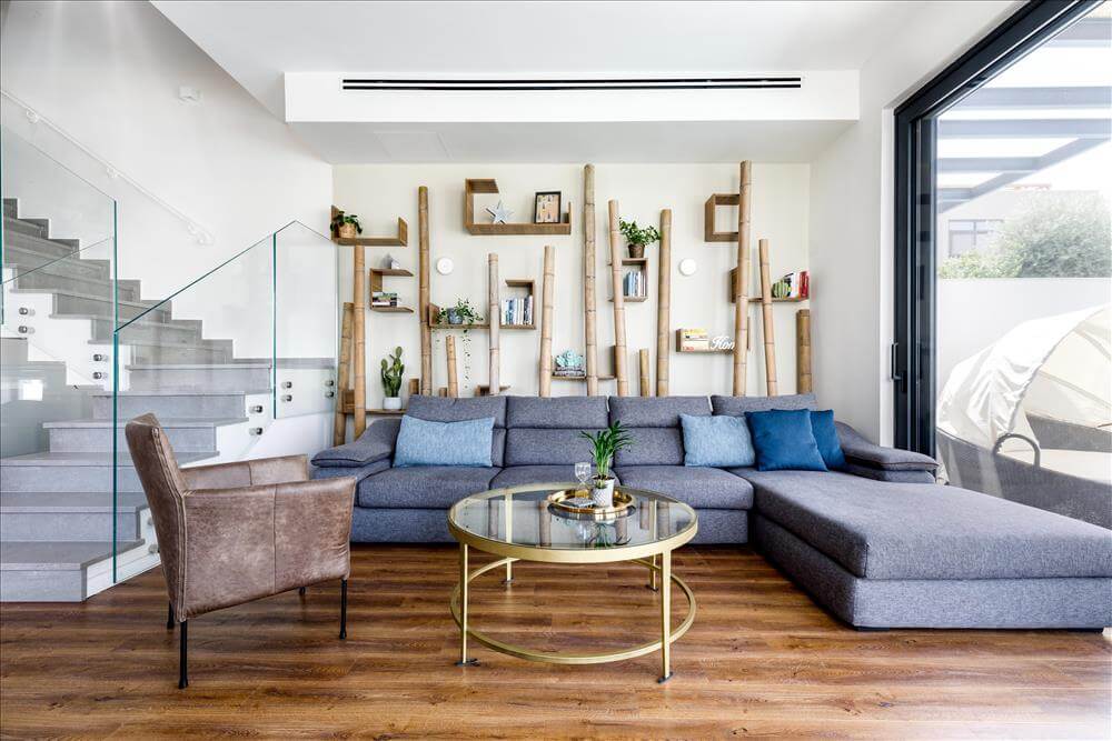 קיר הכוח בחלל זה הוא ספרייה בגב אזור הישיבה בסלון, מיוחדת במינה המשלבת מוטות במבוק בגבהים משתנים ותיבות עץ תלויות על הקיר. הקיר נצבע בגוון ירוק זית בהיר ומהווה רקע מתאים לספרייה.