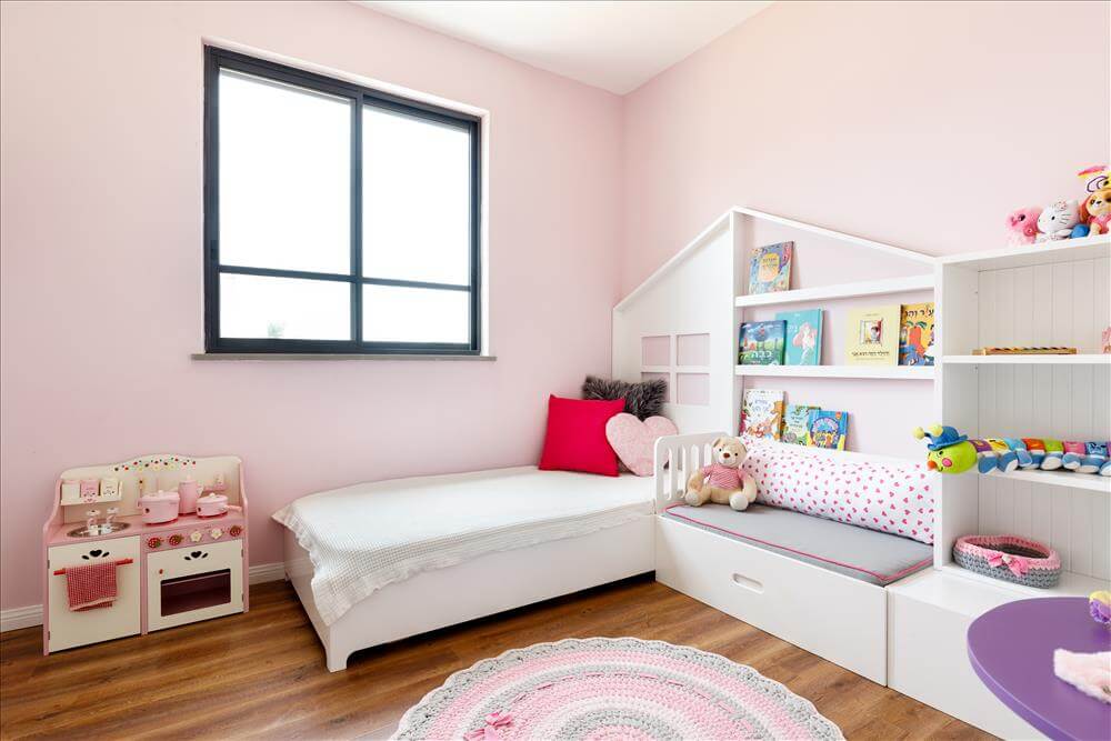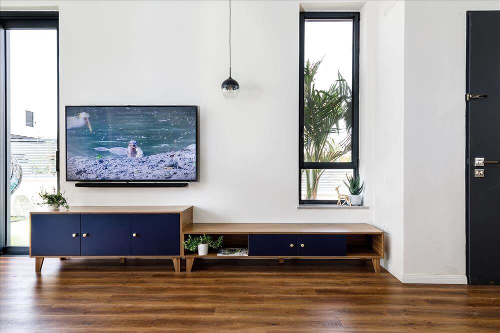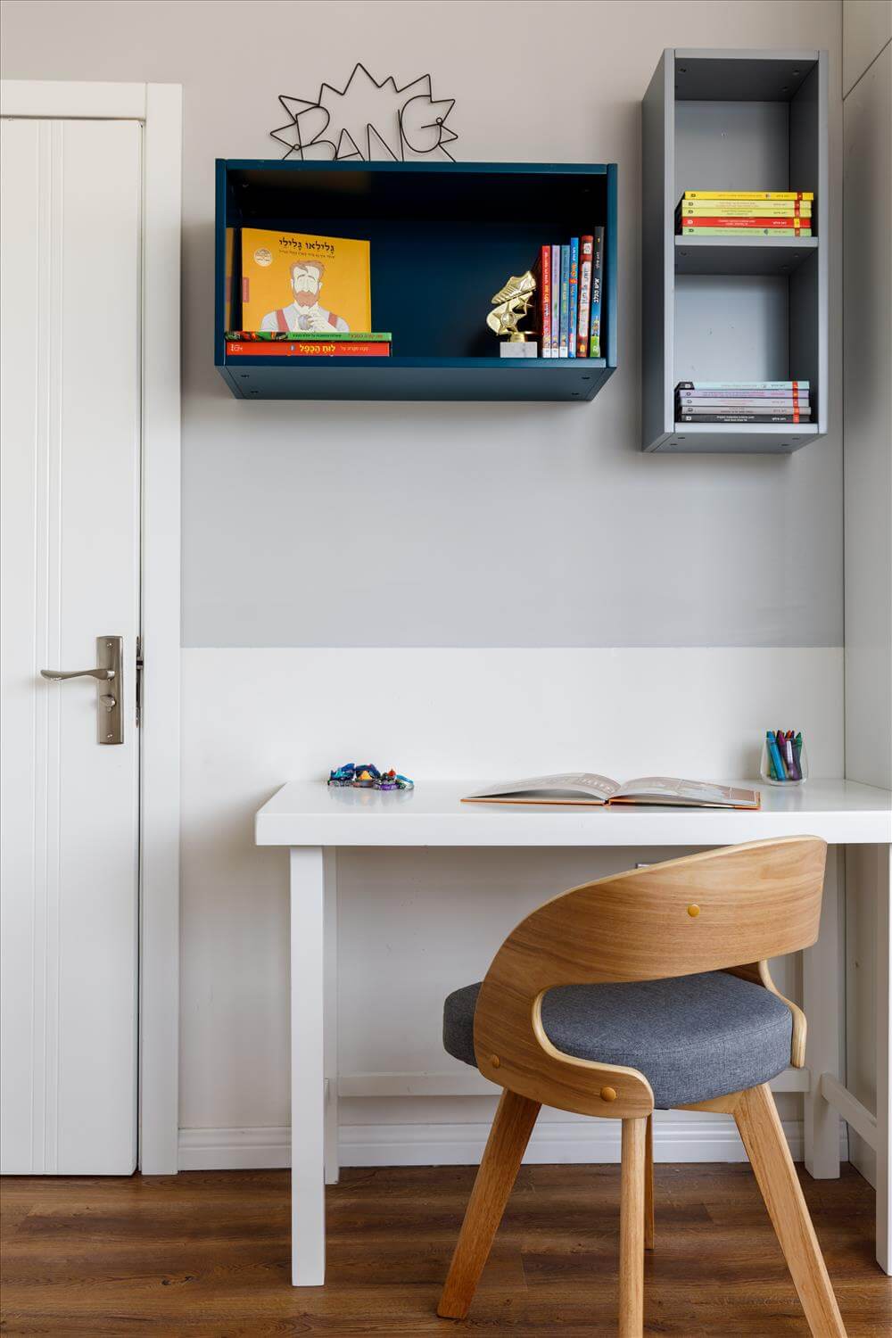 לצד המטבח פינת משפחה על במה מוגבהת מהרצפה, ומגרות לאחסון משחקים.
