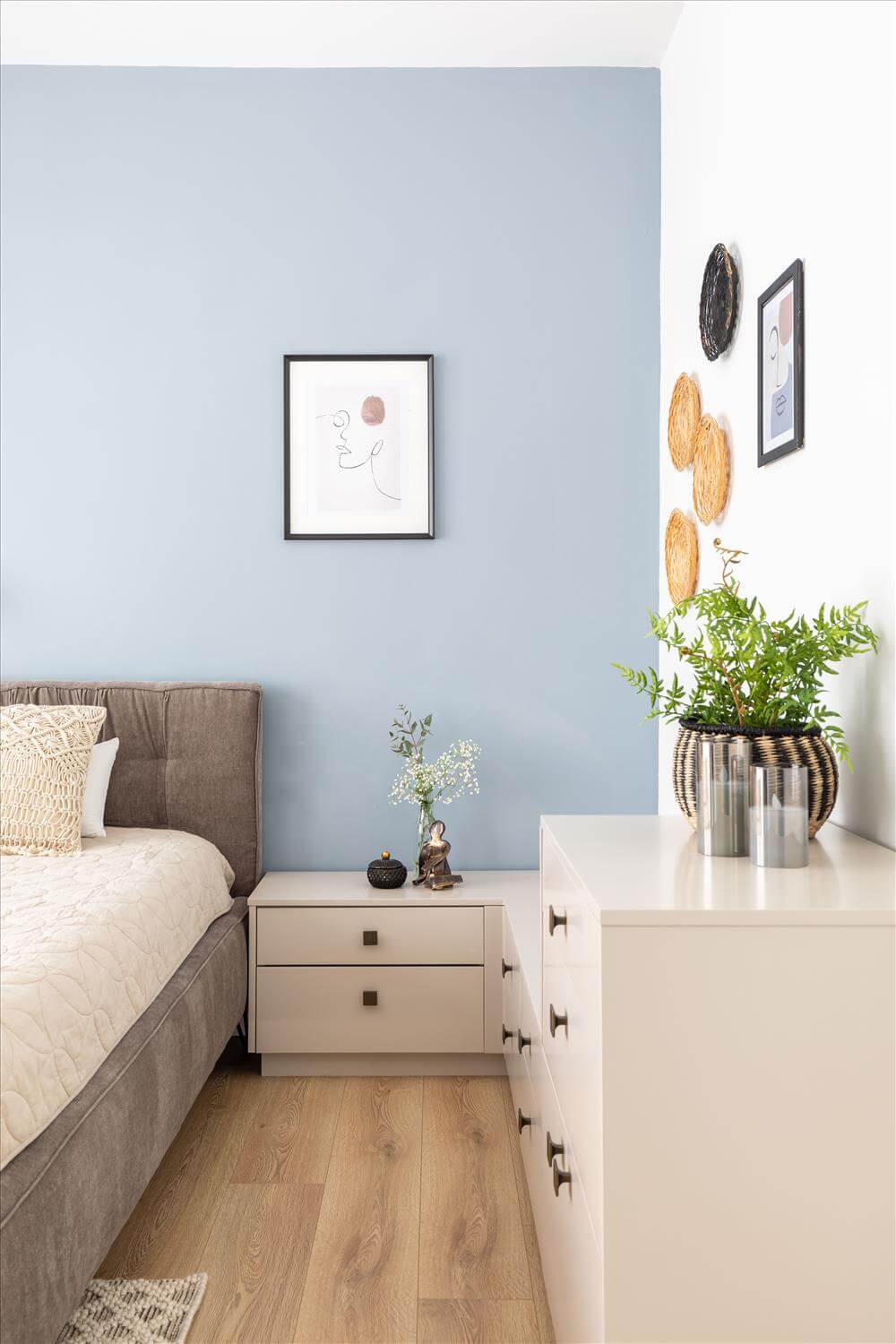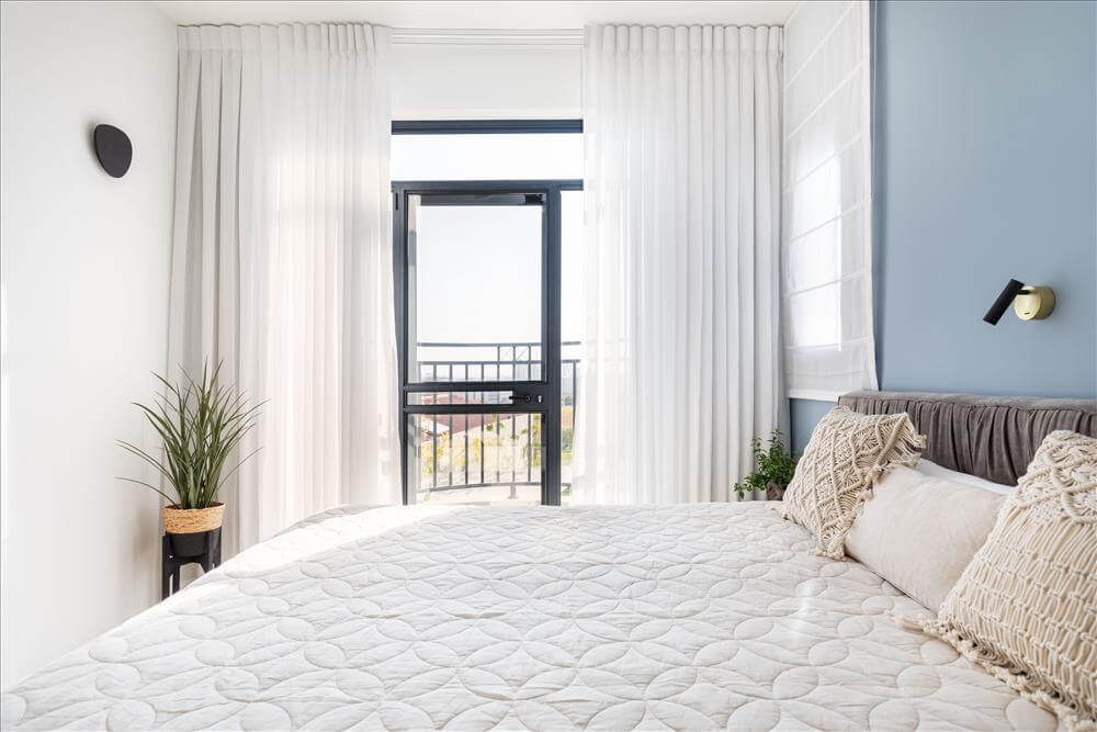 שמתחבר לאווירת הצימר בסוויטה. פלטת הצבעים שנבחרה לחדר השינה וחדר הרחצה מייצרת אוירה של חופשה רגועה. המדרגות חופו
