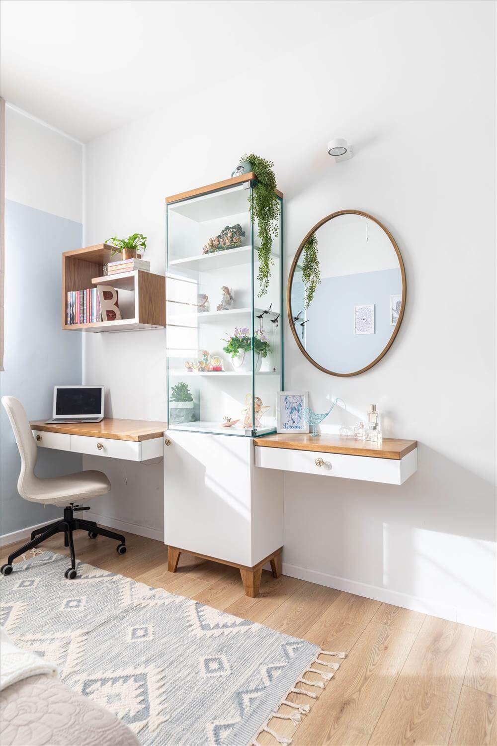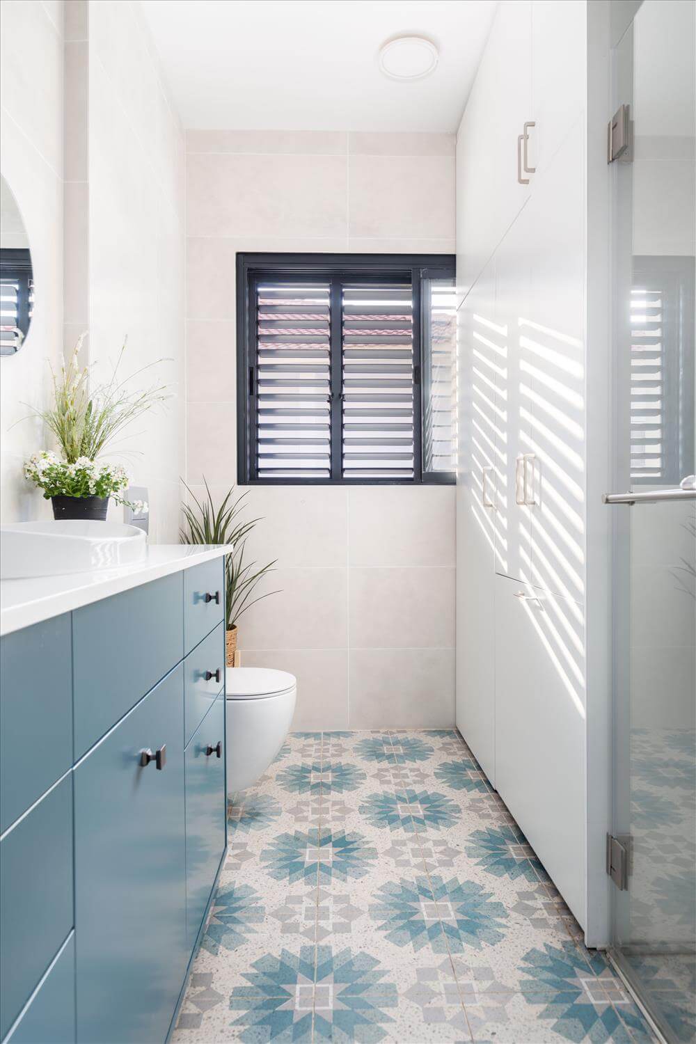חדר הרחצה הכללי הוגדל וכולל בתוכו ארון כביסה,שרות ואחסון גדול. אמבטיה הוחלפה במקלחון, וארון רחצה גדול בגוון תואם לאריחי הריצוף משרת בנוחות את שני הילדים. חדרי הילדים בקומת המגורים עוצבו בקפידה, פריטי הריהוט והנגרות תוכננו בהתאמה אישית. חדר הבן המקורי הוסב לחדר משפחה עם אזור לצפייה ומשחקי מסך ובנוסף לפינת עבודה עם ספריה ויח' אחסון מעל.