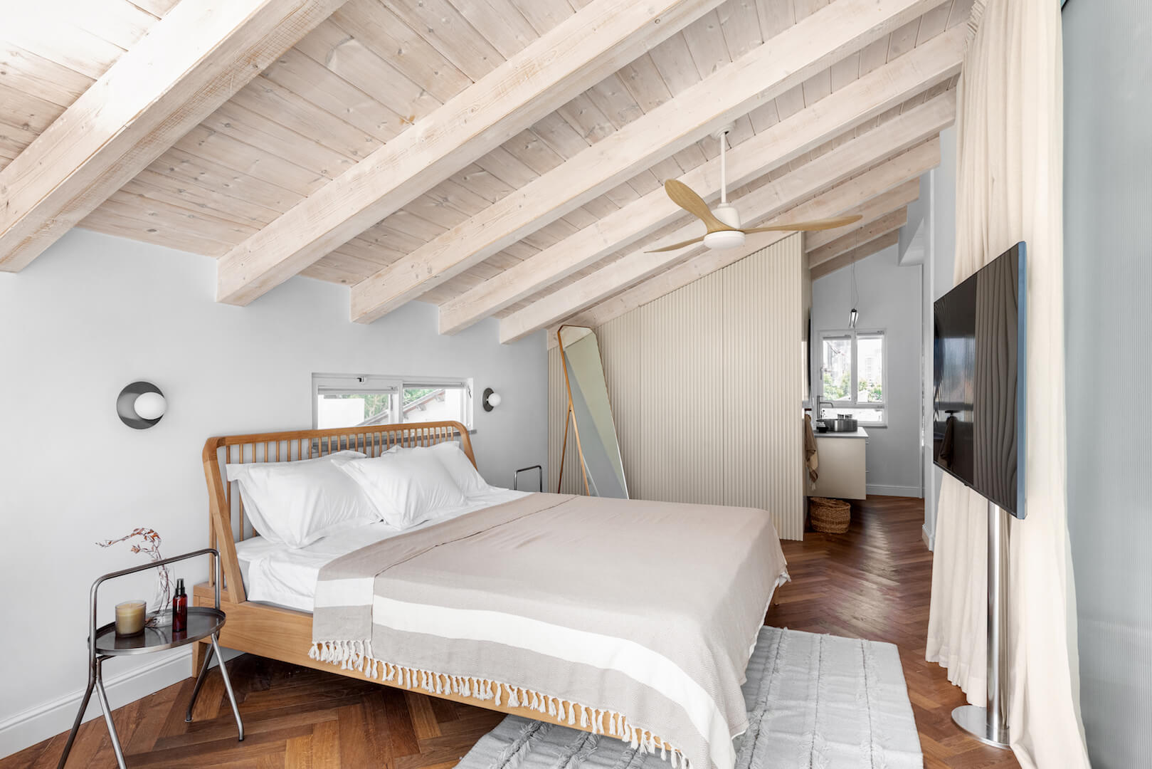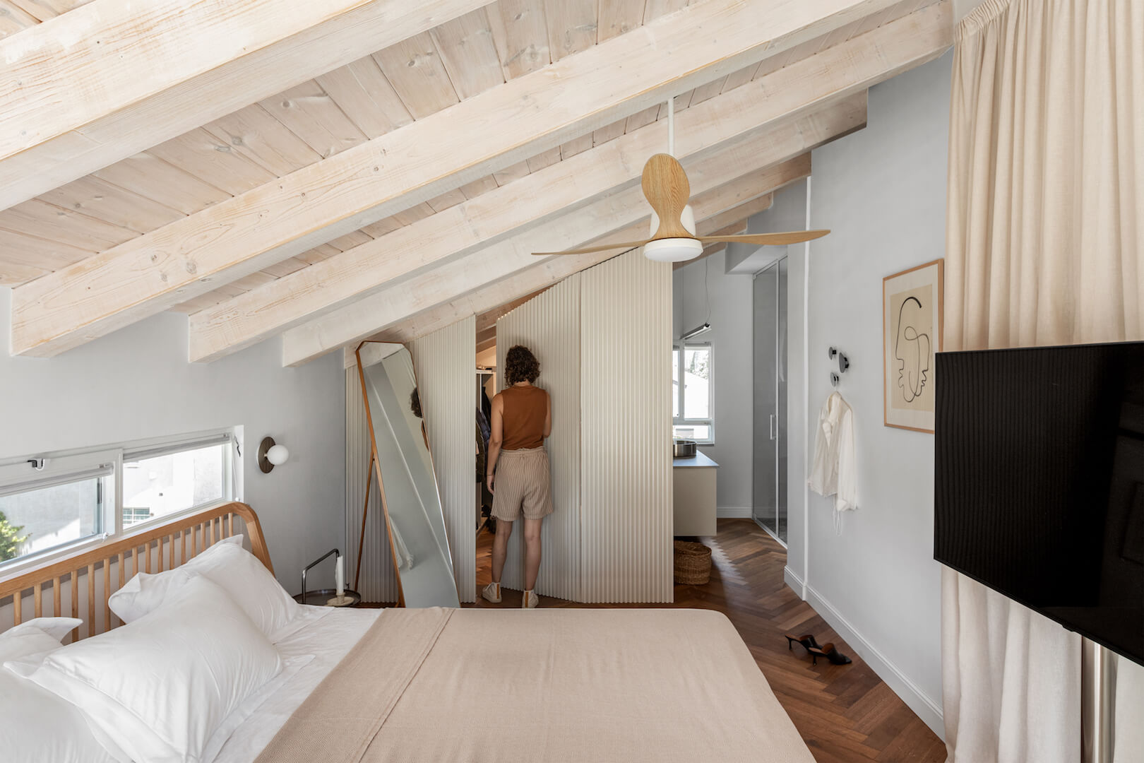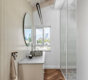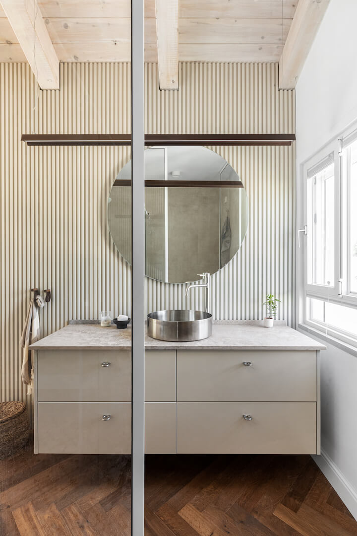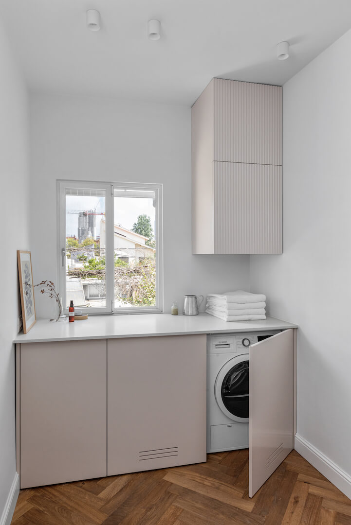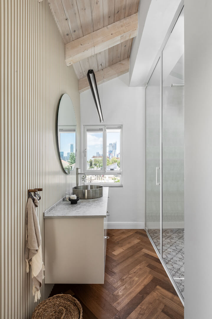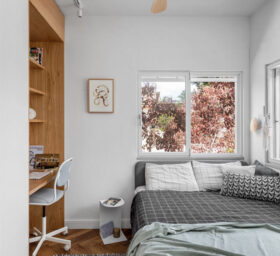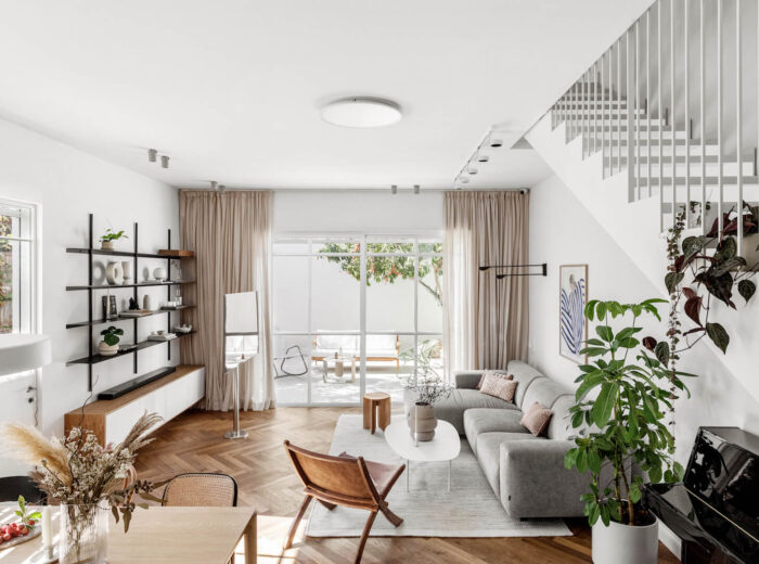 פרויקט בשכונת ביצרון בתל אביב, שכלל שיפוץ של קומת הכניסה וכן בניית שתי קומות נוספות – קומת ילדים וקומה שכולה מאסטר הורים.בקומת הכניסה (בבית המקורי) היו שני מפלסים, הוחלט להשאיר את הבמה ועליה לבנות את המטבח. דרך המטבח ישנו מעבר לשירותי האורחים וכן לחדר העבודה.בקומה הראשונה נמצאים חדרי הילדים ושני חדרי רחצה, ובקומה העליונה מאסטר הורים מפנק, עם יציאה למרפסת פרטית.מעבר ליצירתיות הנדרשת בפרויקט מן הסוג הזה (הכולל אילוצי שיפוץ ובניה) היו גם בחירות עיצוביות מעניינות שהן לא הבחירה הטבעית שלי.היתה לי זכות גדולה ללוות את הלקוחות האלו, שמצד אחד כל כך פתוחים, סומכים וזורמים עם כל שיגעון שלי, ויחד עם זאת מגיעים עם רצונות עיצוביים בסגנון שהוא מעט שונה ממני.כך נולד לו הפרויקט הזה, עם האופי המיוחד והייחודי שלו