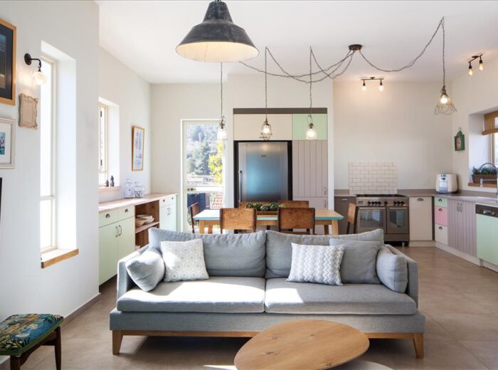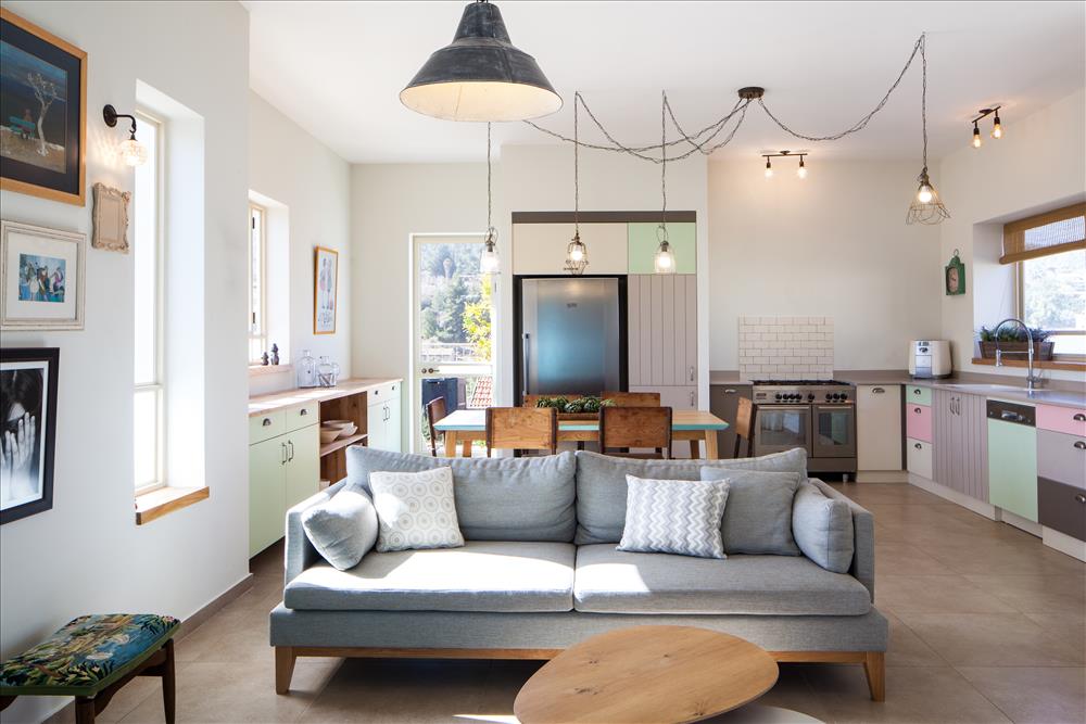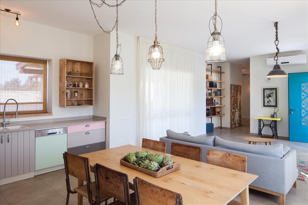 בחרנו פלטת צבעים עדינה אך מגוונת שיצרה בית צבעוני ומזמין, שמנו דגש על פרטי טקסטיל מגוונים, ריהוט מותאם, שימוש בריהוט משלים מיד שניה ויצירות אומנות.
