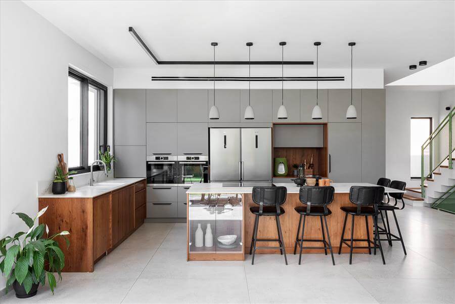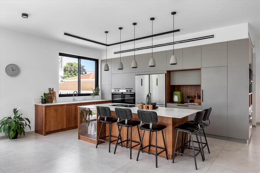 יש פה הרבה פתרונות איחסון לכל דבר בבית בנגרות מאוד מיוחדת שתכננתי לפרטי פרטים,