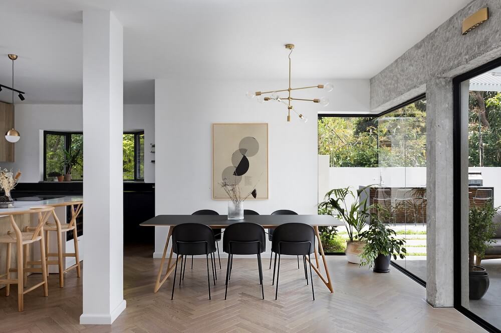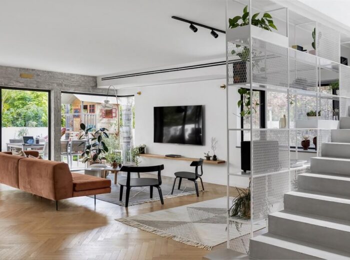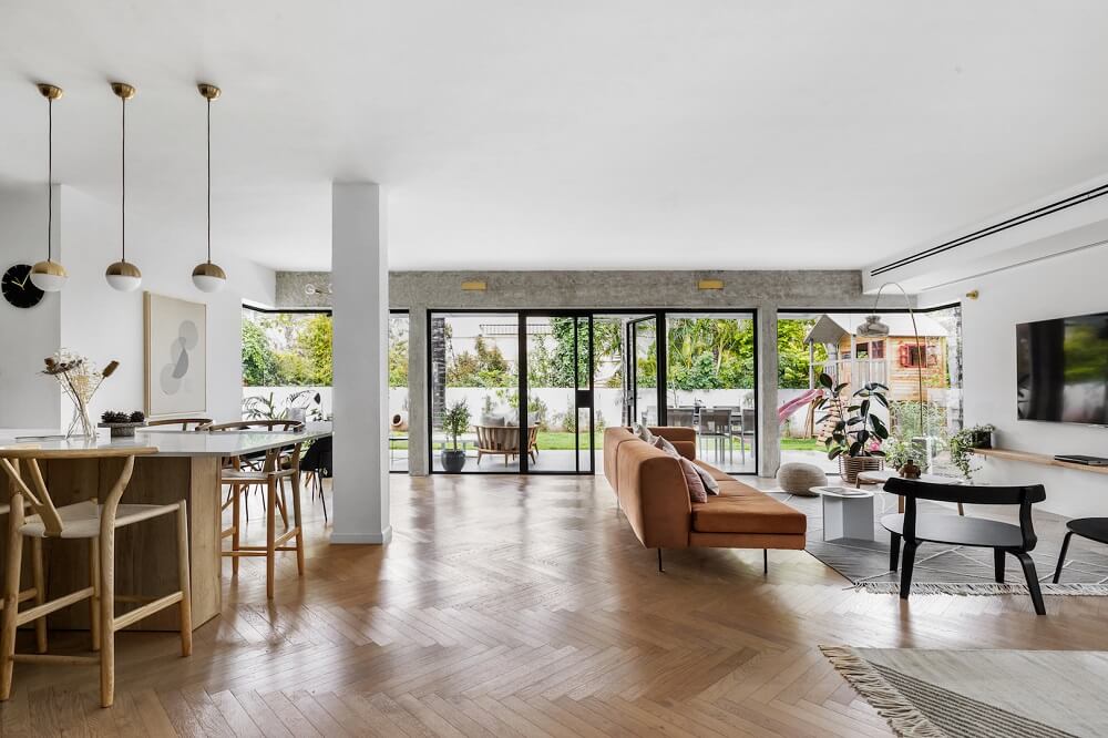 על מנת לפתוח את החלל המרכזי לחלל אחד, 'אופן ספייס', הוחלט על שבירת קיר המטבח וצירופו לחלל הסלון.