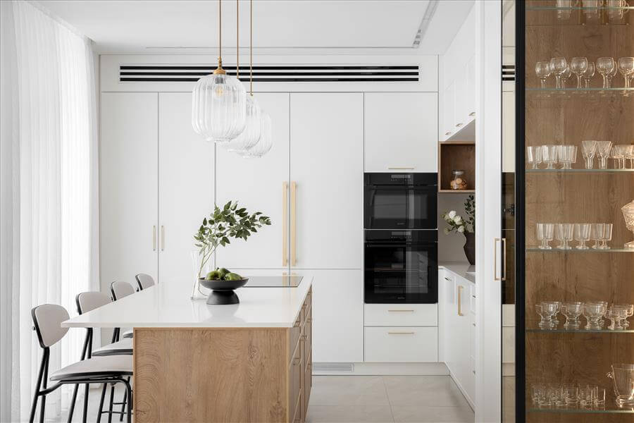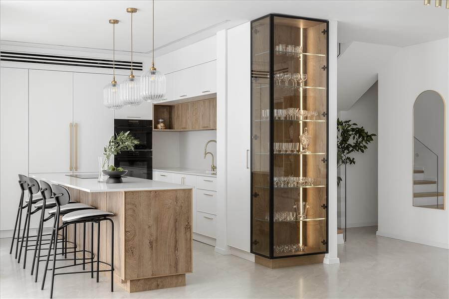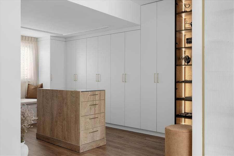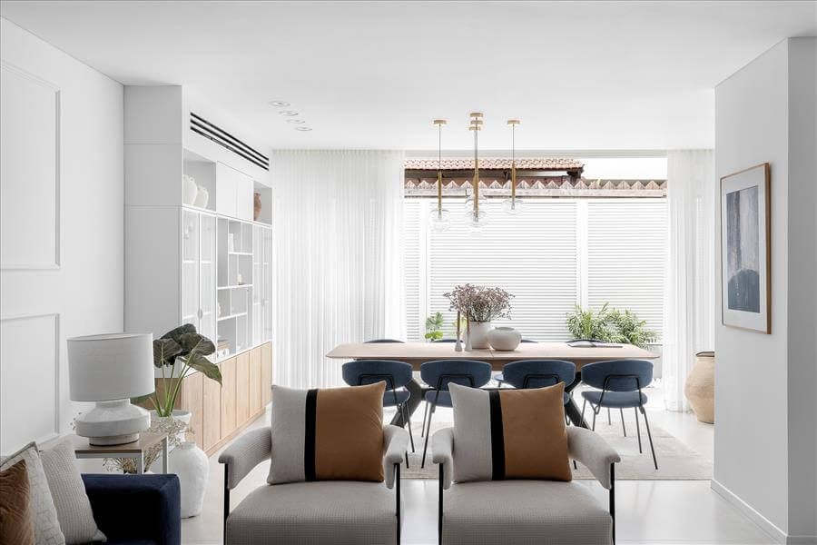 הלקוחות בגיל השלישי, החליטו אחרי שנים של מגורים בבית, לבצע שינוי בחלל, לטובת הנפש ובו בזמן לטובת הנוחות של המשפחה המורחבת.