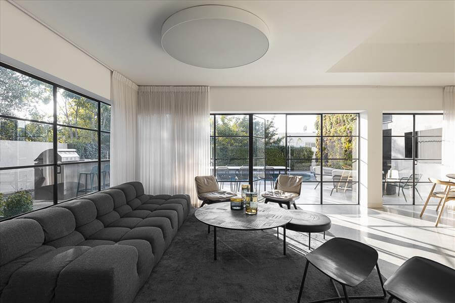 את הבית הזה סיימתי לשפץ לפני כעשר שנים. אז קיבלתי בית מתפורר בן 20 שנה ברעות, שערכתי בו יחד עם האדריכלית הירוקה נעמי גלברט, שיפוץ מלא מן היסוד, שכלל הריסה מאסיבית, תכנון מחדש, ליווי הבניה, תכנון פרטי הפנים, ובסיום הלבשה של החלל כולו.