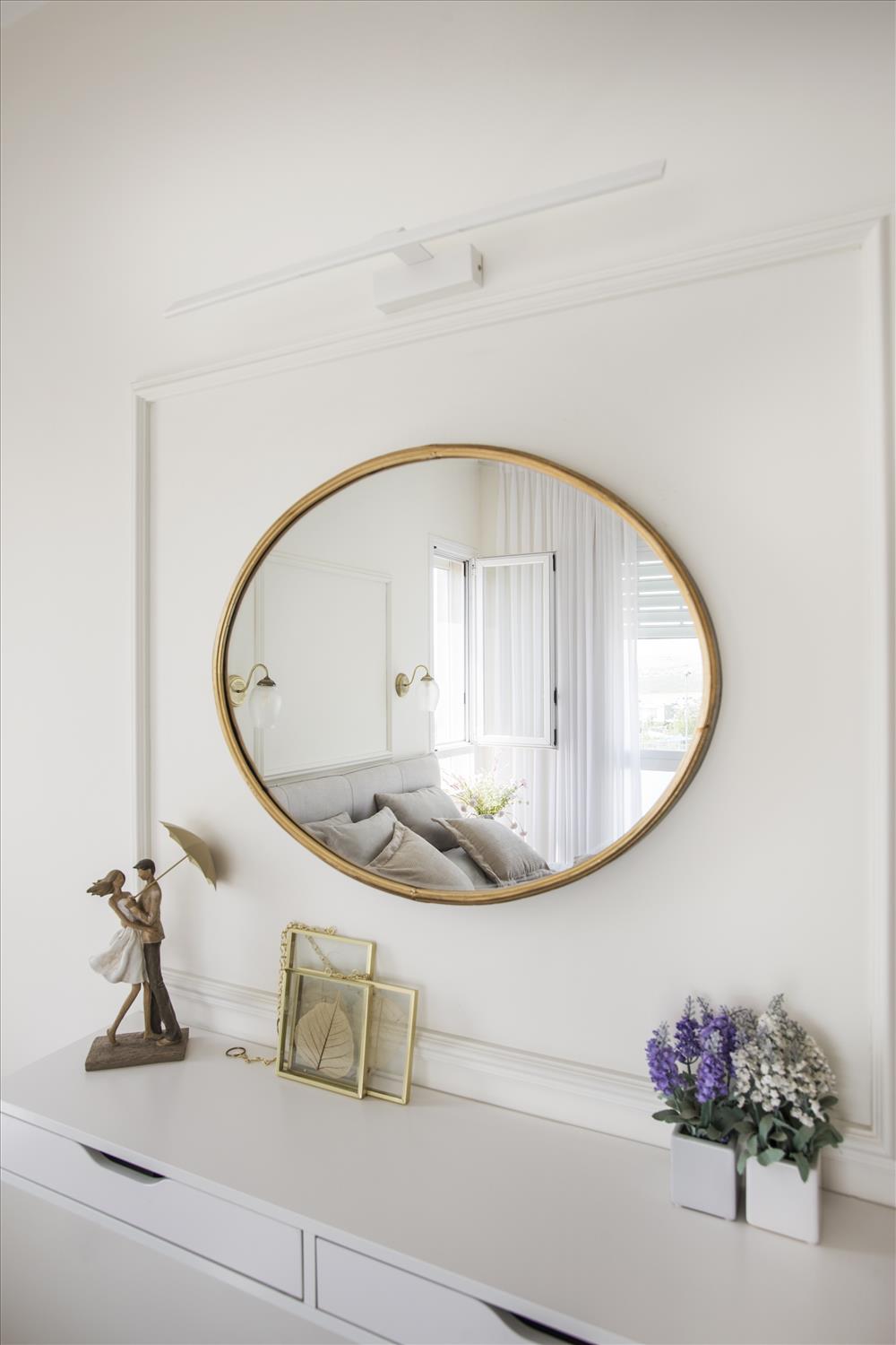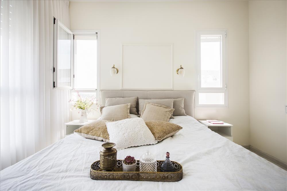 שנה נישה שמשמשת כחדר ארונות וסגורה בדלתות כדי לשמור על הסדר וההרמוניה. בחדר הותקנו גופי תאורה כפריים, נתלו וילונות מבדים רכים ונשפכים והותקנה רצפת פרקט. גם כאן שולבו קרניזים במסגרות של תמונות להשלמת המראה הרומנטי.
