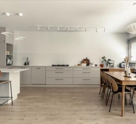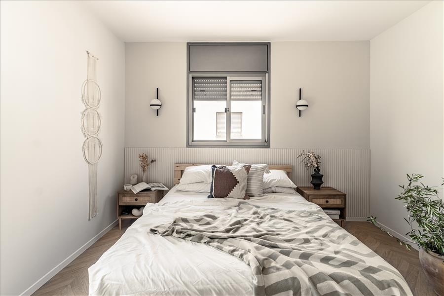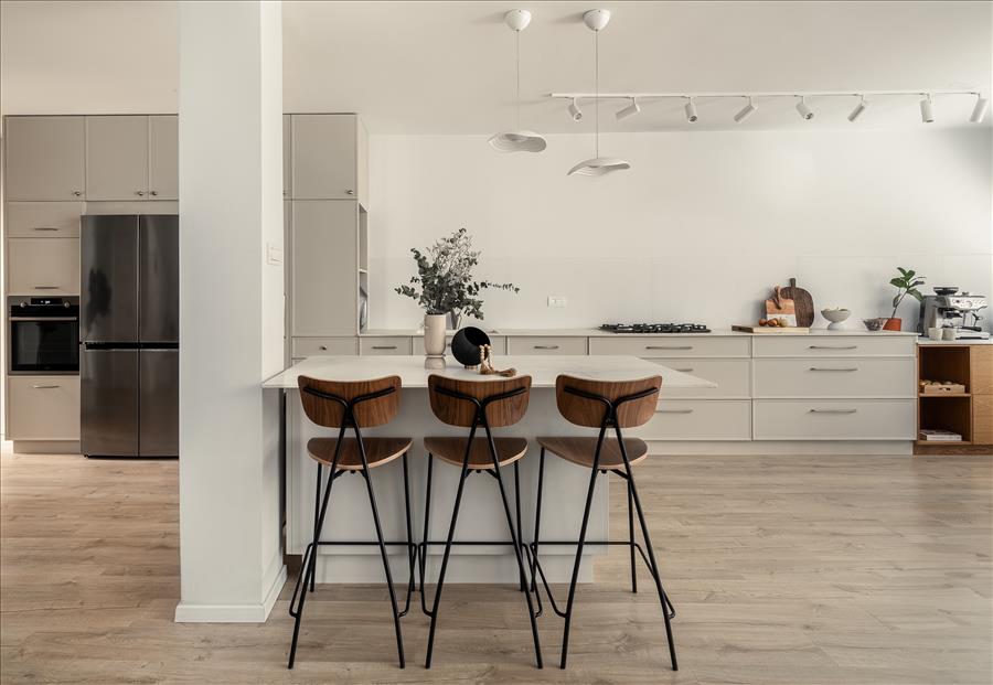 כל הדירה חפה מטרנדים, ממניירות, מעומס פריטים. הכל נקי, בהיר, עוטף, נכון, על זמני, כזה שלא ימאס לנו ממנו אף פעם.