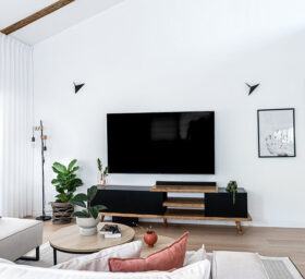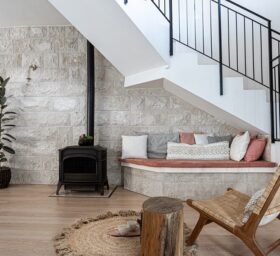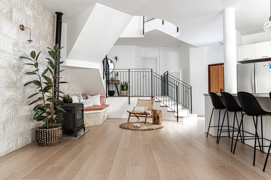 השיפוץ כלל תכנון מחודש לחלל המרכזי ולמטבח, שיפוץ והגדלת חדרי הרחצה והלבשת הבית