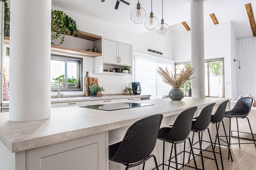 כשהגענו לבית לראשונה, הוא הרגיש מיושן עם מטבח קטנטן , אפלולי, עם שני עמודים קונסטרוקטיבים באמצע החלל, ובכלל לא שיקף את אופי