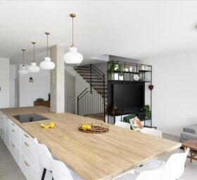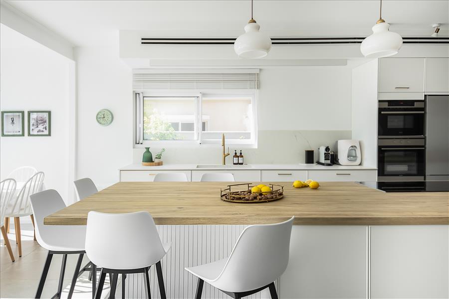 הסלון והמטבח הוחלפו במקומם כדיי ליצור מטבח גדול ומפנק לעומת המטבח הקטן שהיה קודם.