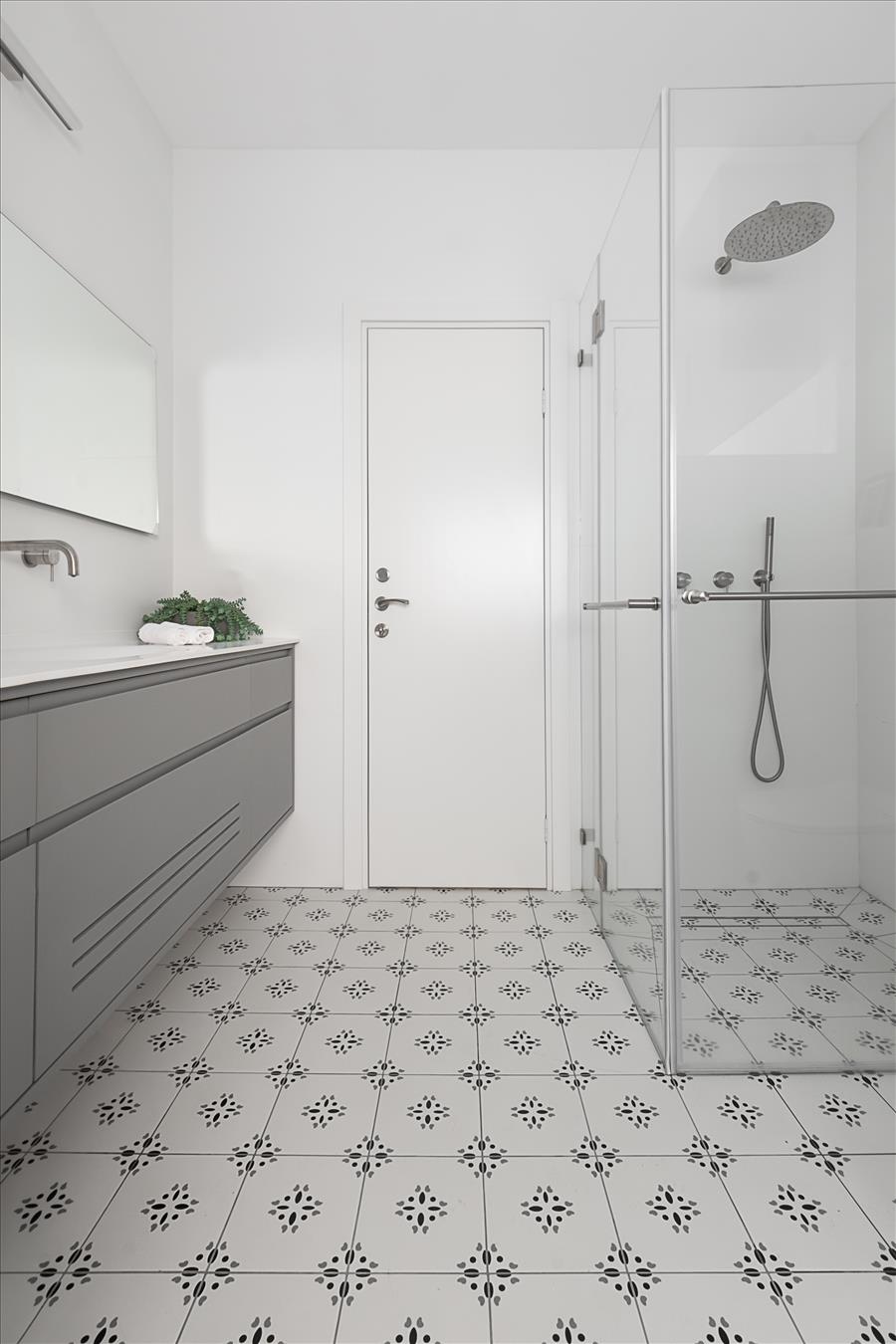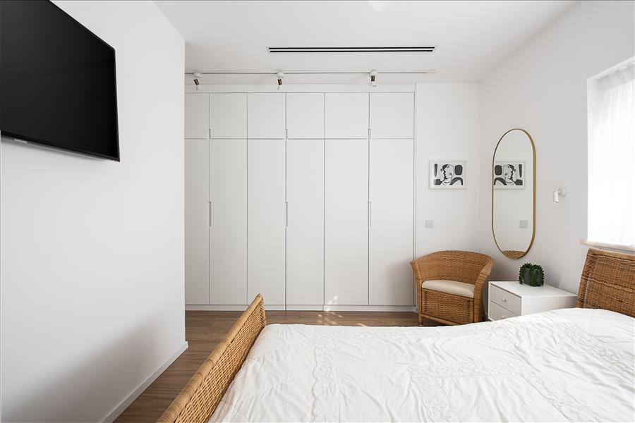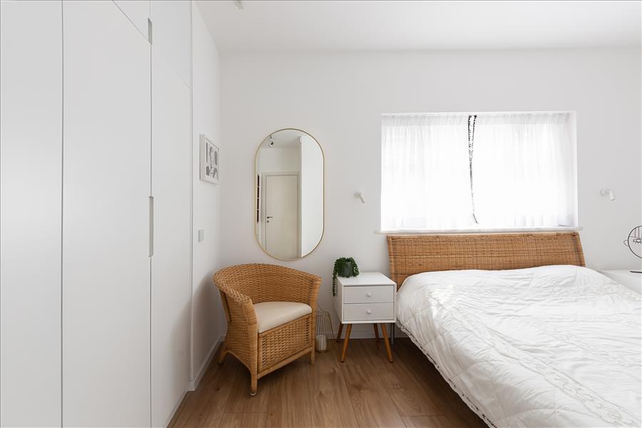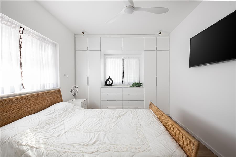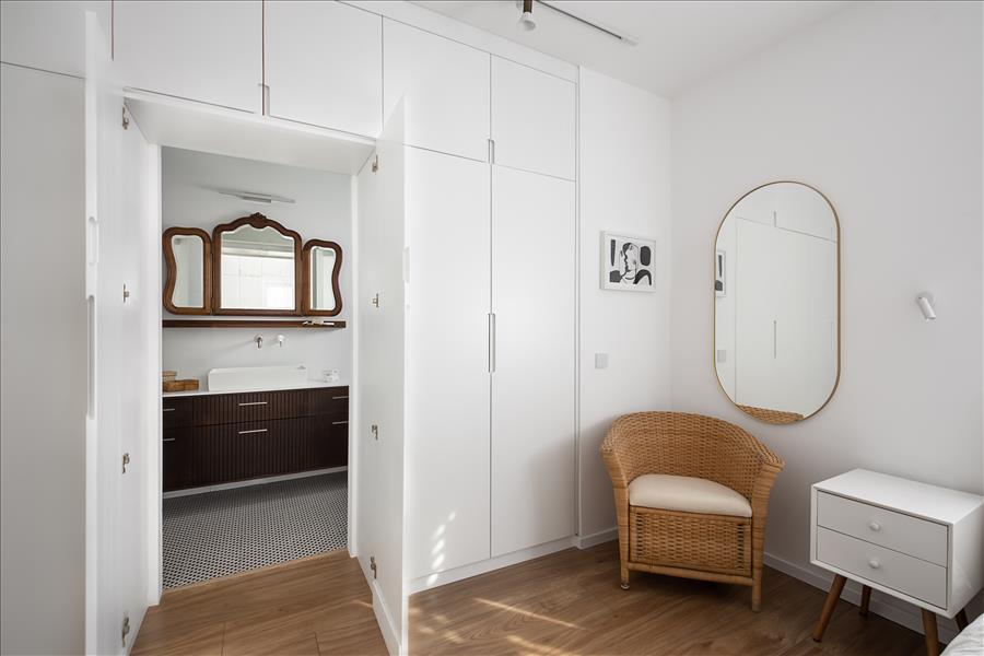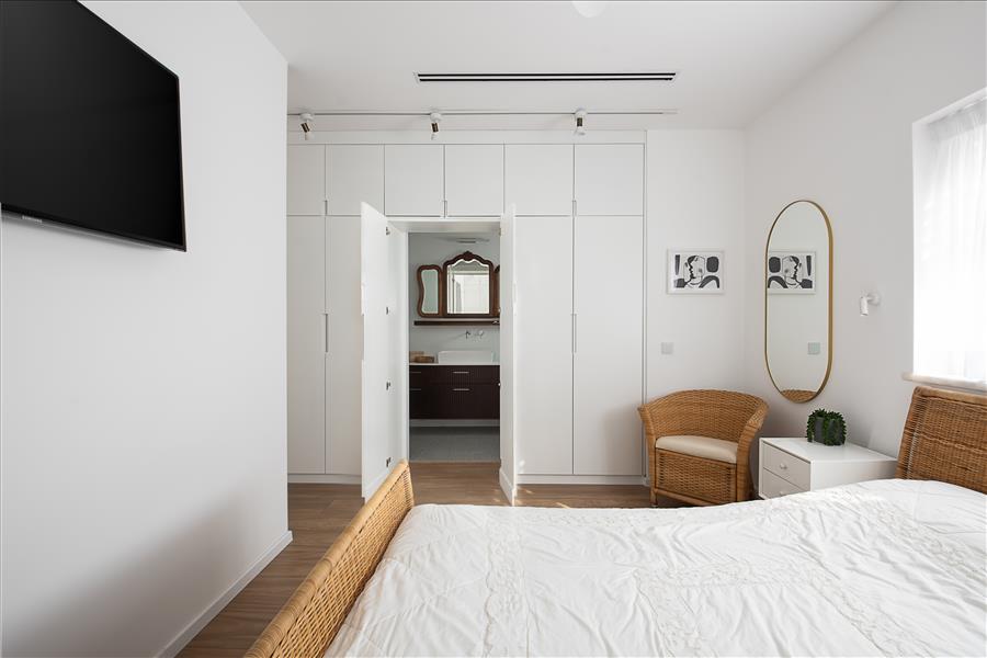 הבית עבר שידרוג: הוספנו חימום תת רצפתי, חשמל חדש בכל הבית, מזגנים, הוחלפו חלונות, דלתות פנים ודלת כניסה, והכי חשוב חדר השינה שכלל בתוכו חדר ארונות ומקלחת קטנה אוחד למקלחת גדולה ומפנקת ובכניסה למקלחת מוקם ארון שדרכו נכנסים למקלחת.