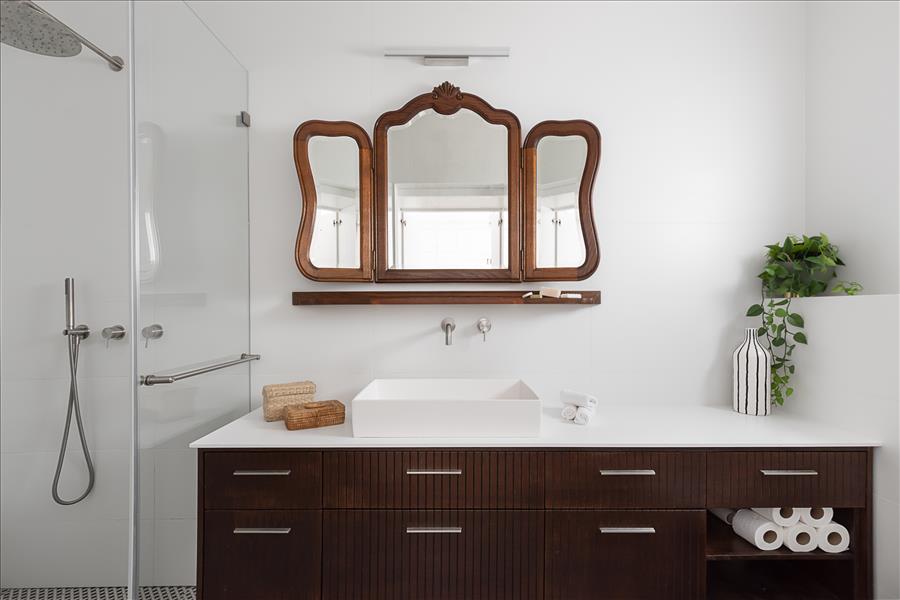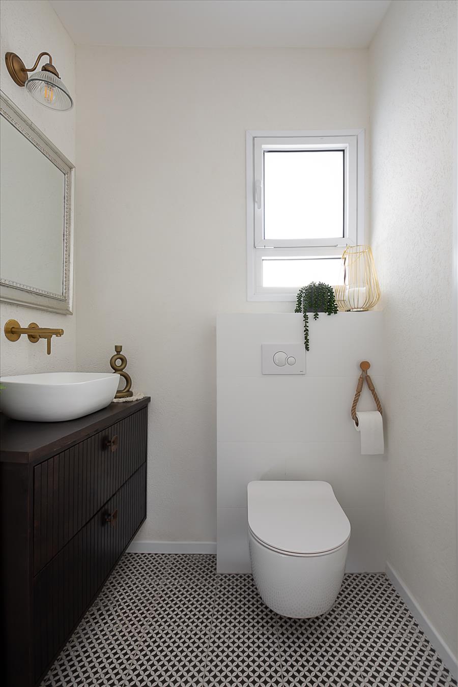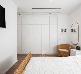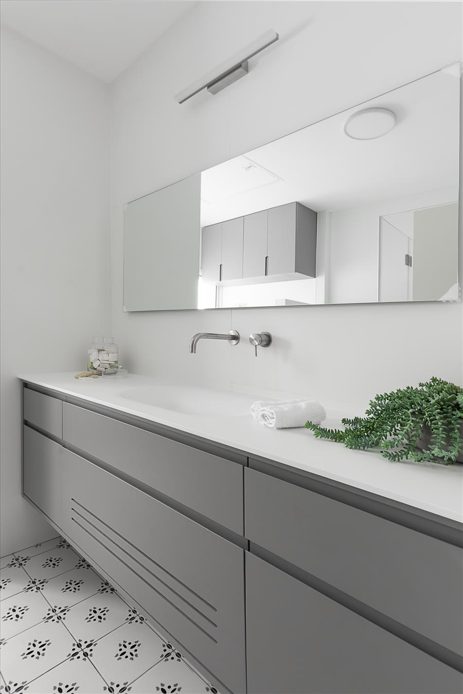 הבית עבר שידרוג: הוספנו חימום תת רצפתי, חשמל חדש בכל הבית, מזגנים, הוחלפו חלונות, דלתות פנים ודלת כניסה, והכי חשוב חדר השינה שכלל בתוכו חדר ארונות ומקלחת קטנה אוחד למקלחת גדולה ומפנקת ובכניסה למקלחת מוקם ארון שדרכו נכנסים למקלחת.