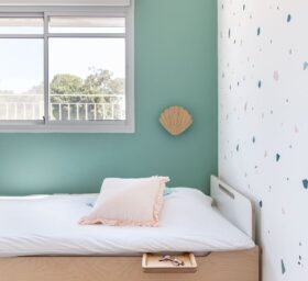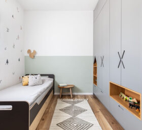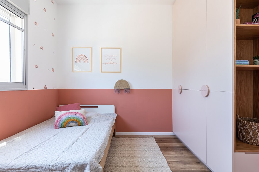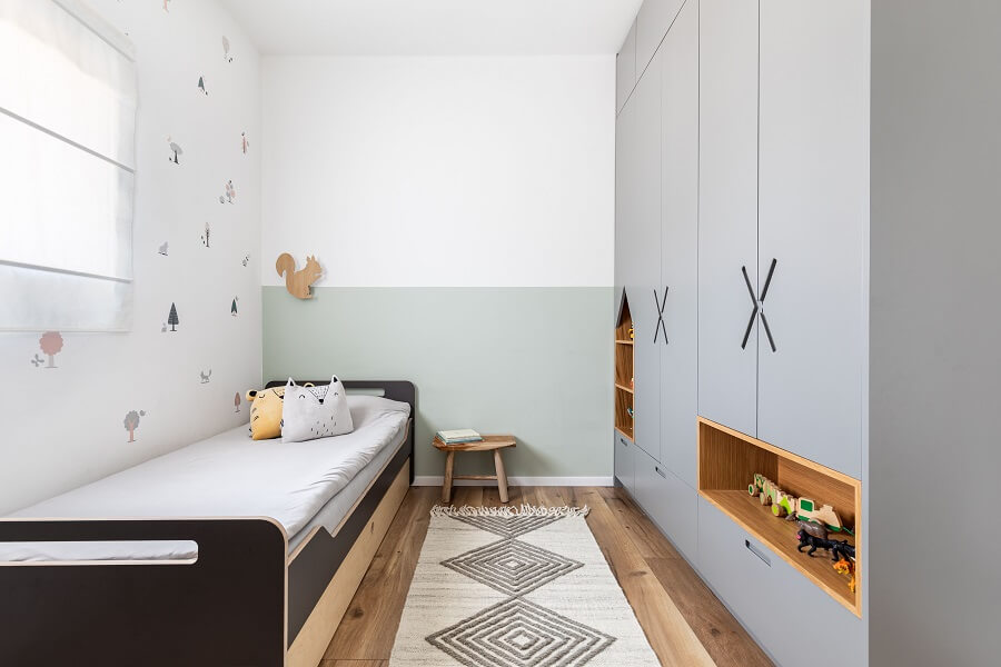תוכננה עבודת נגרות מדהימה בכל חדר ארון בגדים מיוחד שמשולב בו גם אחסון פתוח לספרים ומשחקים.