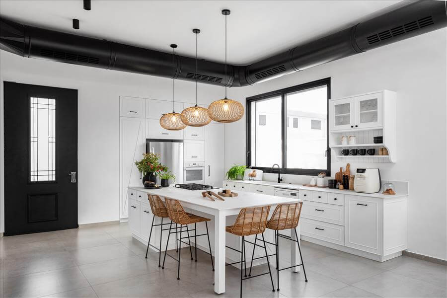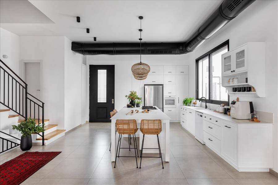 את הבית רכשו הלקוחות המקסימים שלי מיזם שהיה גם הקבלן ואני נכנסתי לתמונה בשלב השלד לפני כשנתיים, יחד ישבנו לרקום חלום עם בקשה מאוד ברורה של הלקוחה לבית בסגנון כפרי, שיהיה קוזי וחמים עם פריטי נגרות לבנים.