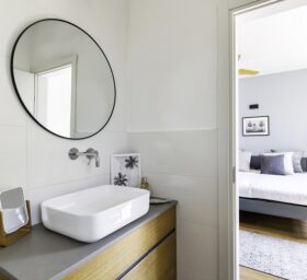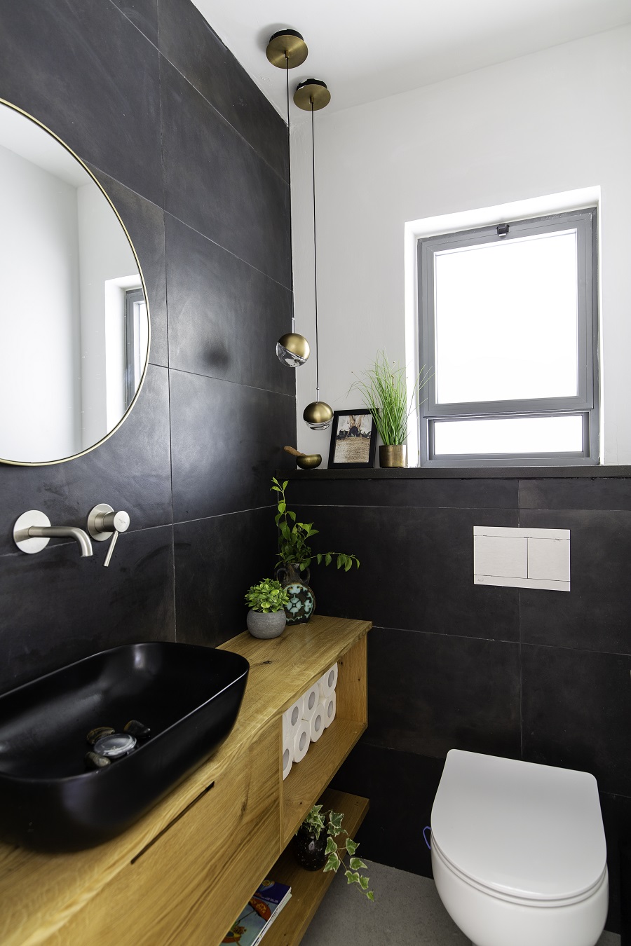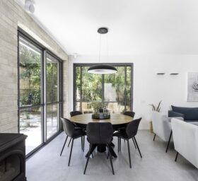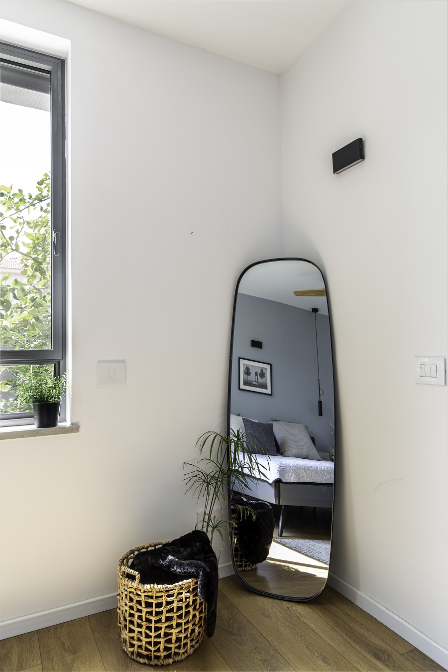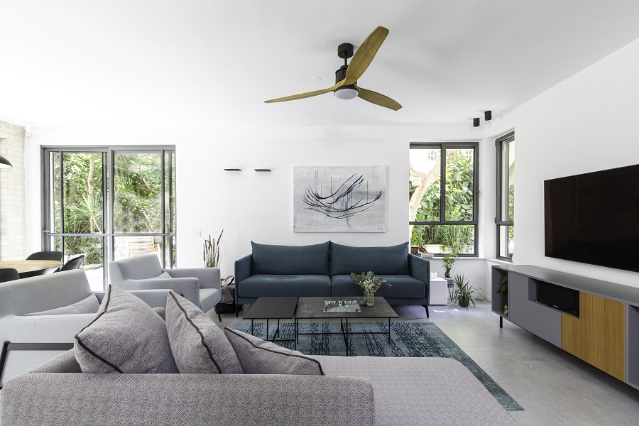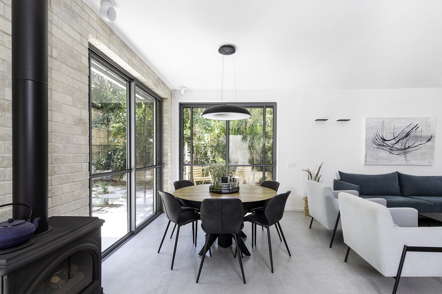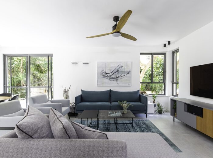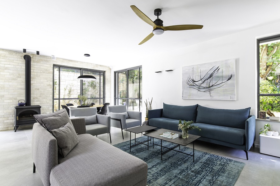 שיפוץ מלא לבית דו משפחתי עבור משפחה עם ארבעה בנים. השיפוץ כלל הגדלת הפתחים, תכנון חדש לחלל הציבורי, קיר המפריד בין המטבח לסלון פורק, מיקום המטבח הוחלף עם הסלון ליצירת מטבח 2 פסים רחב ידיים עם אי גדול המאפשר ישיבה לכל בני הבית. המדרגות לקומת המגורים פורקו והוחלפו במדרגות קלות. וכן שופצו גם החללים הפרטיים. הגוונים האפורים שולטים בבית ובהם הוכנסו זריקות צבע. לאווירה חמימה יותר, החזית הפונה לחצר חופתה בבריקים.