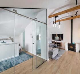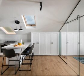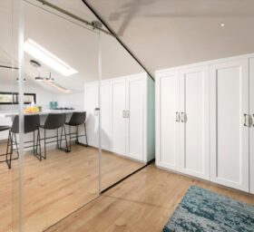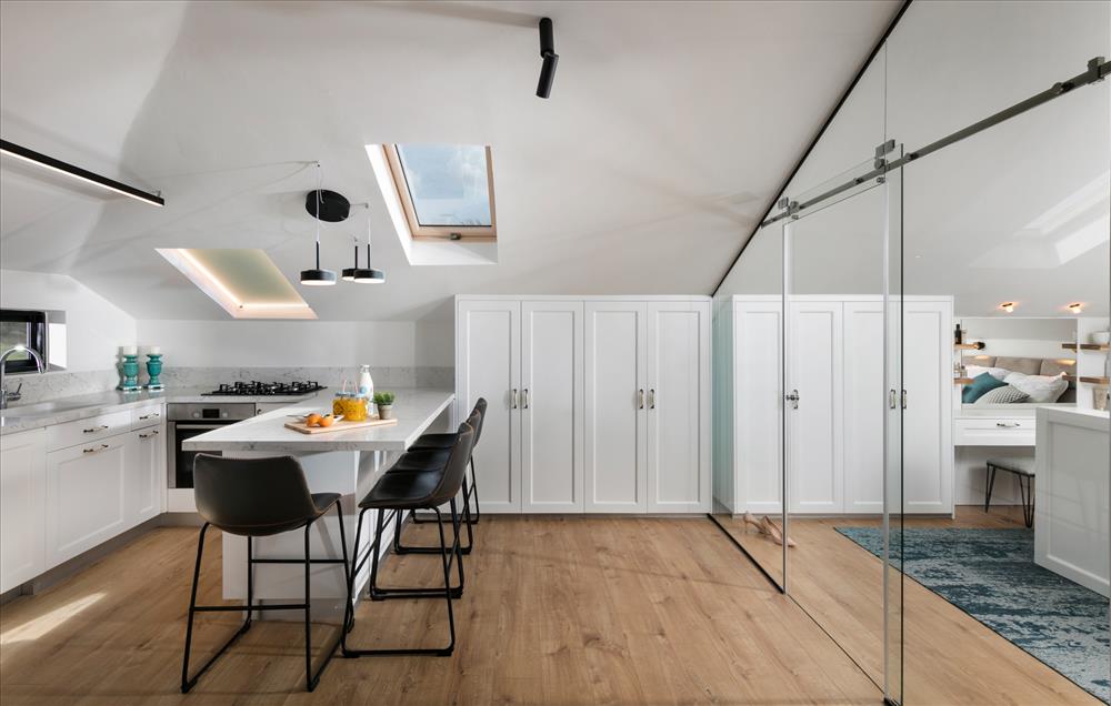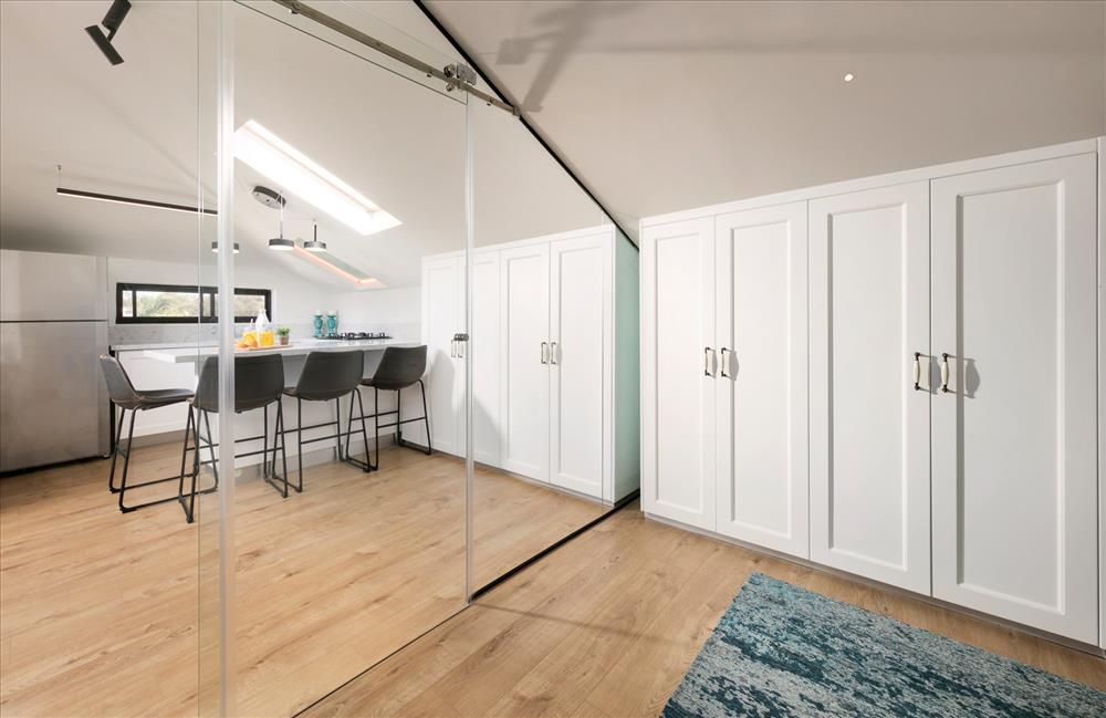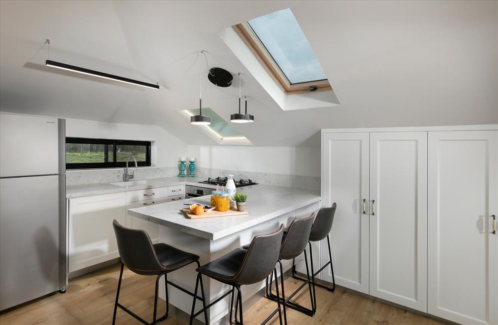 היחידה כולה תוכננה בנגרות מותאמת אישית וזאת כדי לנצל את שיפועי הגג לאחסון.