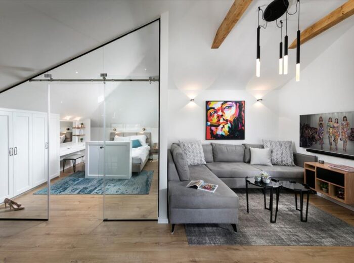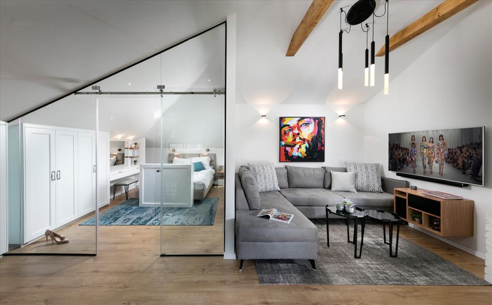 לאחר ששנים שימשה עליית הגג כמחסן, הוחלט לשפץ אותה ולהפוך אותה ליחידת דיור עבור זוג צעיר שעזב את תל אביב לטובת אווירה כפרית. הלקוחות ביקשו לעצב את החלל, 45 מטר, ל"צימר" מפנק באווירה יוקרתית אך חמה ומזמינה.