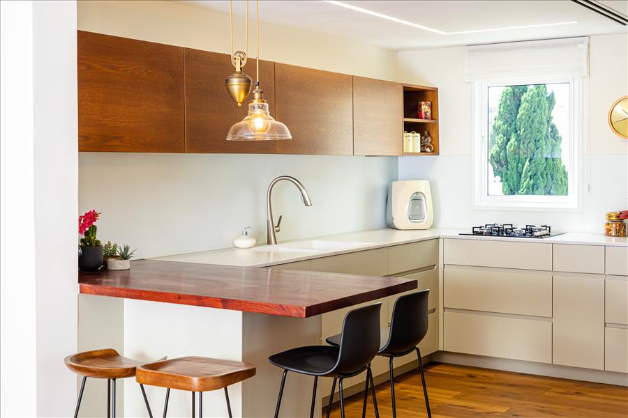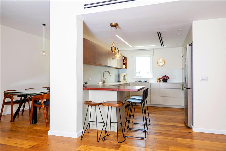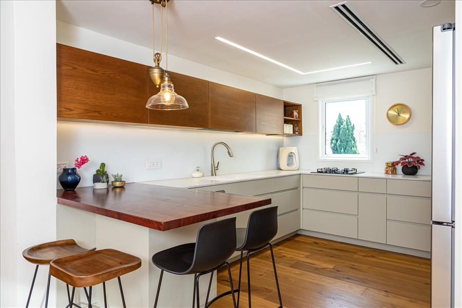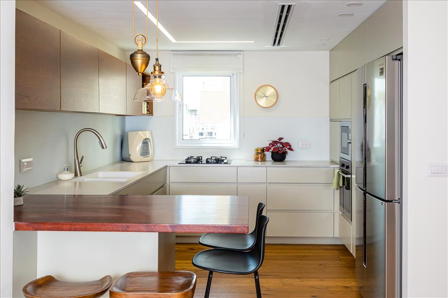 המטבח הישן הוחלף למטבח חדש שמכיל הרבה יותר מקומות אחסון, אפילו את כלי הפסח שפעם היו מאופסנים במחסן הדירתי.