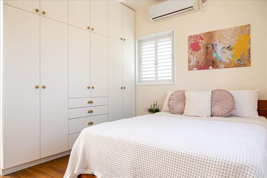 את חדרי השינה שידרגנו עם רצפת פרקט תלת שכבתי שרוצף בכל הדירה ובריהוט חדש שמרגיש כמו חדר אירוח לטובת הילדים והנכדים שבאים.