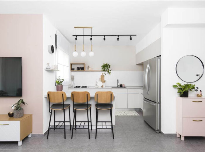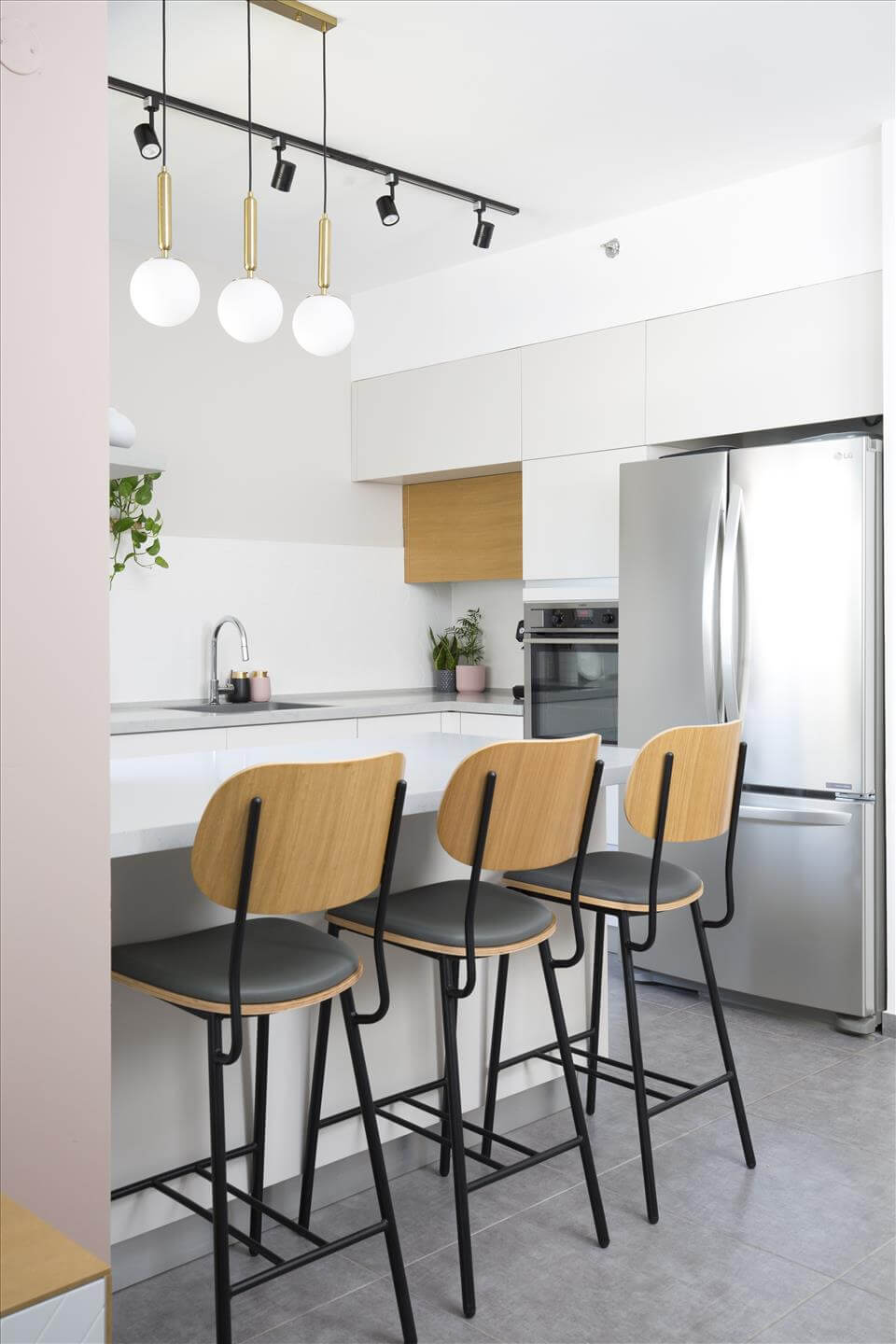הפרויקט כלל עיצוב מחדש לחלל המרכזי – סלון מטבח ופינת אוכל, ואת חדר השינה והמשחקים של שתי הבנות.