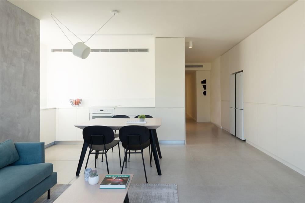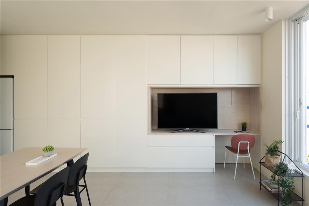 יצירת מקומות אחסון רבים, עיצוב לבן ונקי ומטבח שנבלע בעיצוב הכללי, כחלק מחלל המגורים. השיפוץ היה שיפוץ כללי, החל בהתקנת אינסטלציה חדשה, דרך הגדלת לוח החשמל, שילוב מערכת מיזוג אוויר נסתרת בדירה, שבירת קירות ובניית חדשים במקומם, החלפת ריצוף ודלתות, בחירת תאורה והוספת חדר למטפלת.