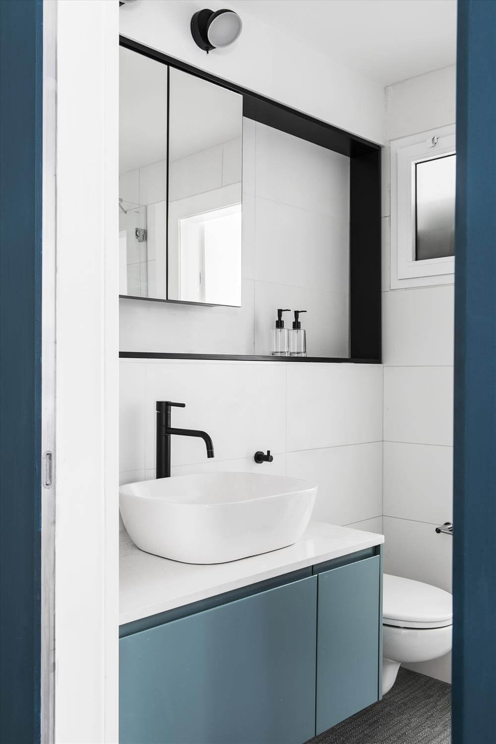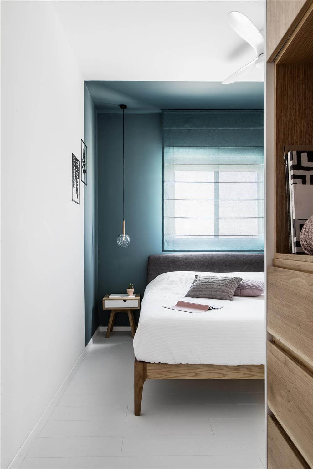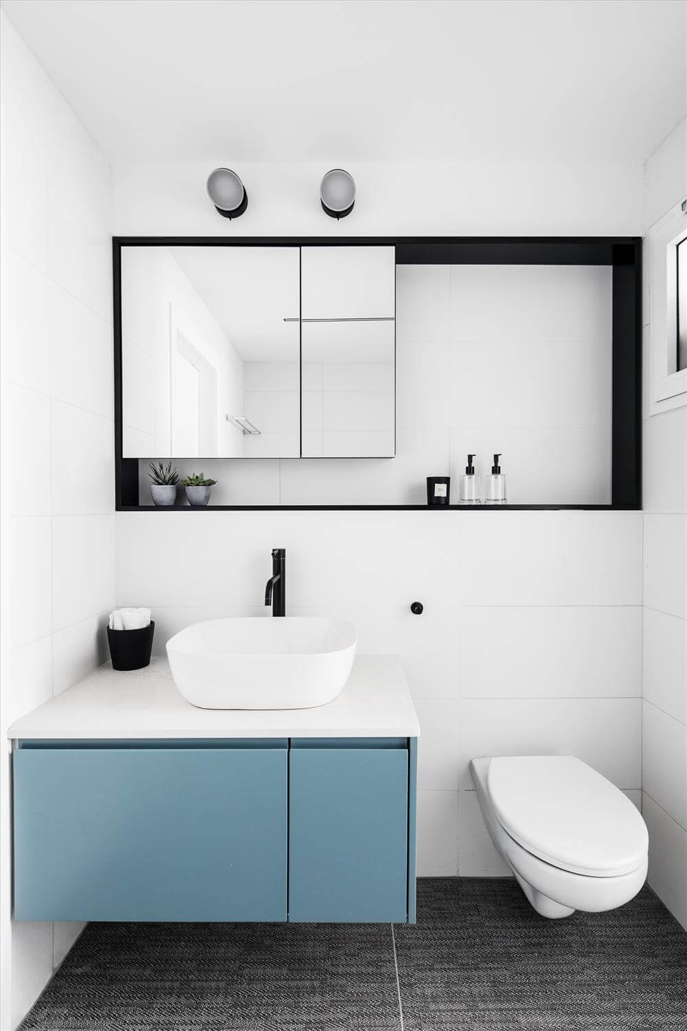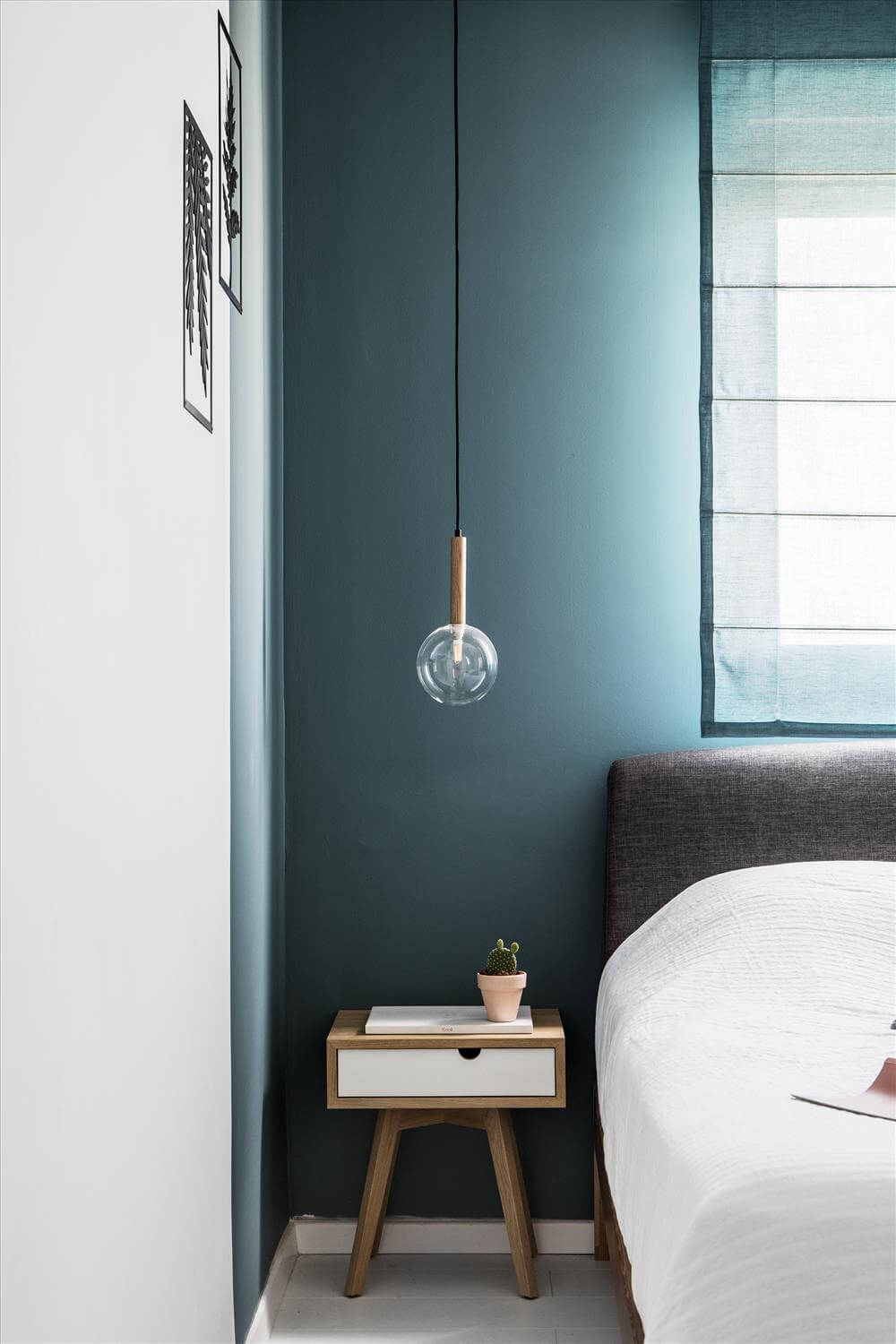 עיצוב דירה זו מאופיין בהגדרת אזורים ע"י שימוש בבלוקים של צבע ורצפה (מפלסים) כאשר את פינת המשפחה הגדלתי, תיחמתי והגדרתי באמצעות במה הממשיכה כספסל בעל 3 מגרות אחסון בפינת האוכל ואת "הקוביה" במרכז הבית, באמצעות צבע דומיננטי ירוק כחלחל המסמל צמיחה והתחדשות בדיוק כמו התהליך בו נמצאים הדיירים. כל קירות הבית (למעט קירות הקוביה) נצבעו בלבן וכך גם הקפדתי לעשות עם משקופיי החלונות והתריסים בחלל המגורים (שבמקור היו בגוון משי חום) זאת, על מנת להעצים את מרכז הבית הירקרק.