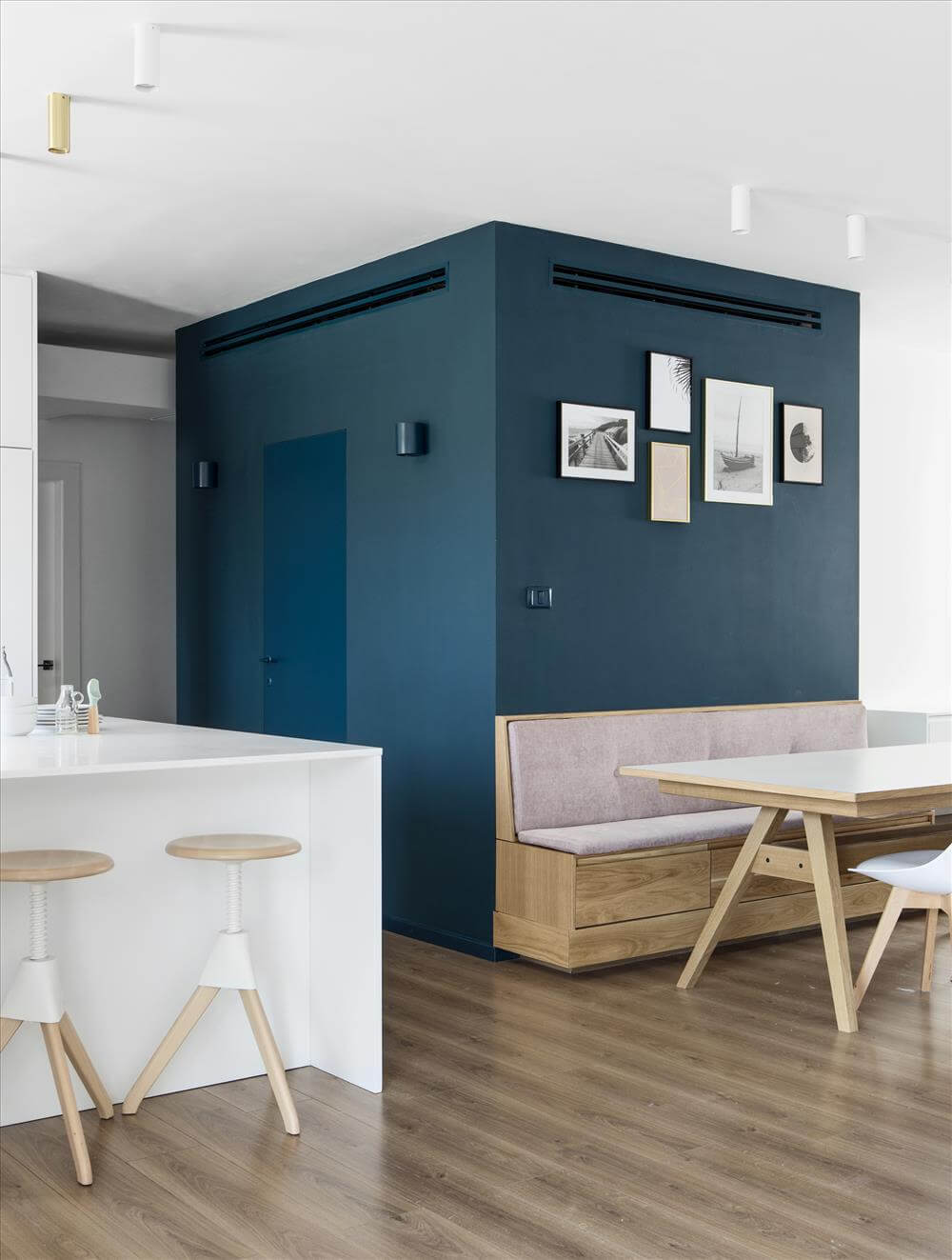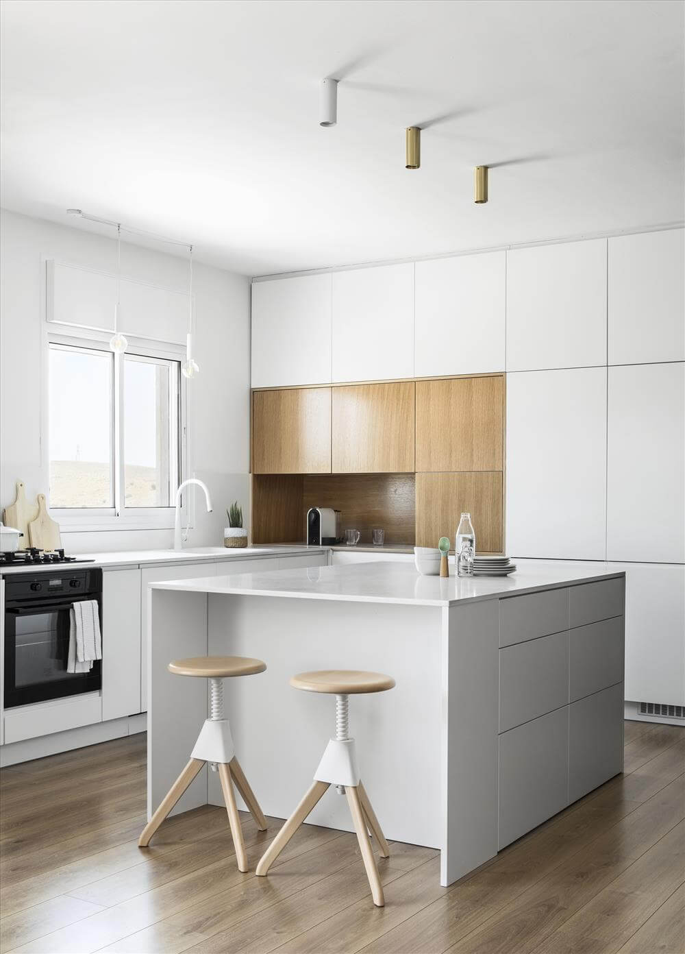 כדי ליצור עבורם את כל אלו, ועוד הרבה לפני בחירות החומרים, היינו חייבים להיפרד מקיר חוסם במטבח , לוותר על סגירת אזור לחדר (הצעת הקבלן) ולהפוך את חלל המגורים לפתוח, לתכנן את התאורה, החשמל , המיזוג ןהאינסטלציה מחדש, לתכנן את פרטי נגרות המטבח, ואת כלל נגרות הבית ולתכנן את כלל פרטי המסגרות. כל זאת תוך מחשבה מה מקבלים מהקבלן ומה רוכשים עצמאית.