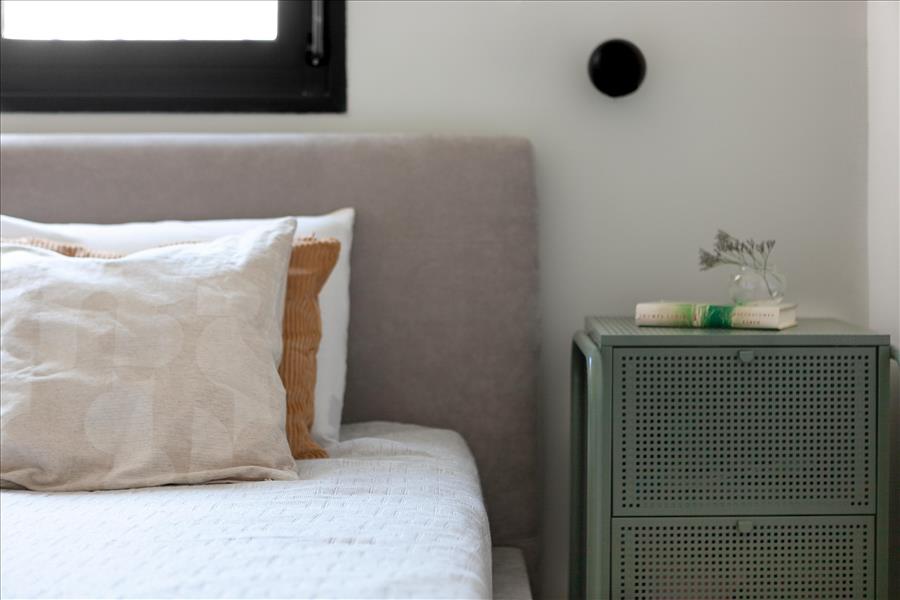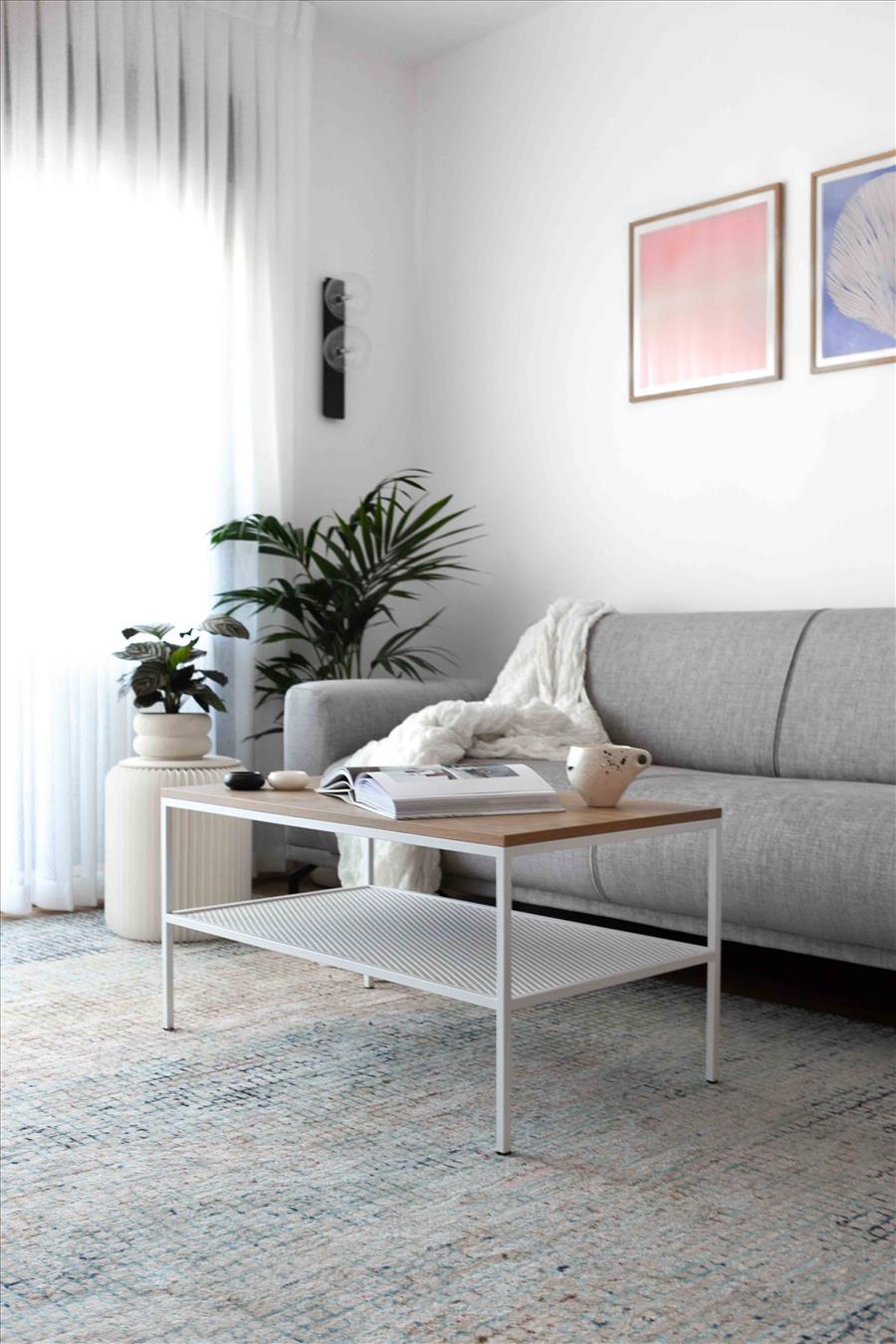 האתגר הגדול בפרויקט היה הפיין טיונינג של החומרים, הדיוק בצבעוניות ובטיב ובכמות של האקססוריז. המינון הנכון היה כאן שם המשחק. לחלק מאיתנו יציאה מאזור הנוחות מתבטאת בהפרשי גוון מזעריים, הוספת פריט אחד ״מיותר״, שימוש בחומרים דרמטיים או דומיננטיים מידי. הפתרון הוא קודם כל רקע אחיד ורגוע, במקרה הזה – לבן, ריהוט בגוונים ניטרליים, ריהוט משלים אוורירי כמה שניתן ורמיזות של צבע באמנות, באקססוריז ובטקסטיל.
