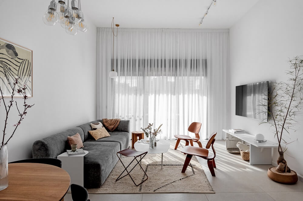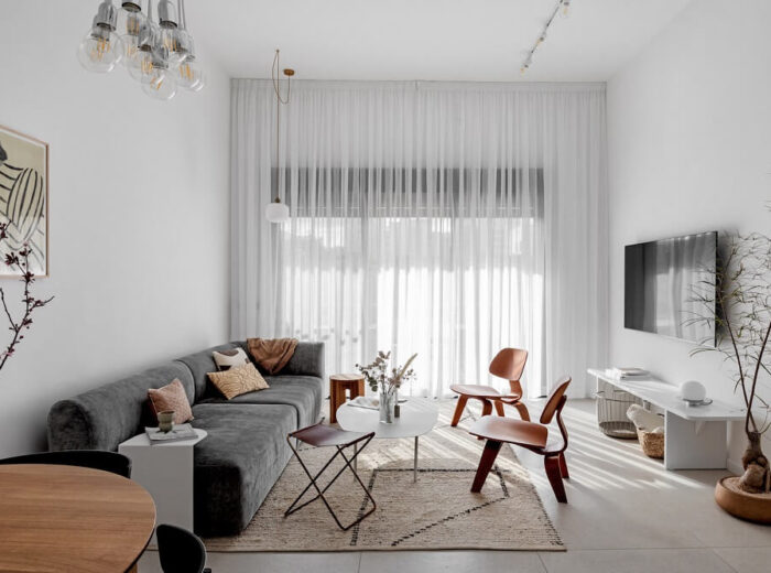 דירת גן מקבלן ברעננה, הדיירים הם זוג צעיר עם שני ילדים. המשפחה ביקשה ליצור תחושה נעימה ומזמינה של בית, לצד פלטת צבעים נקיה ומראה נקי.