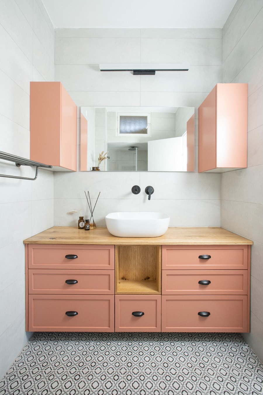 תהליך השיפוץ ארך כחודשיים ובמהלכם קיבלתי יד חופשית לבחירת החומרים ושילובם.