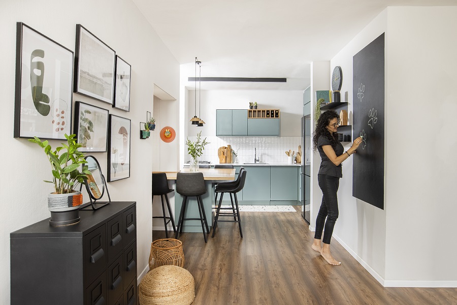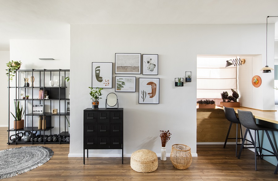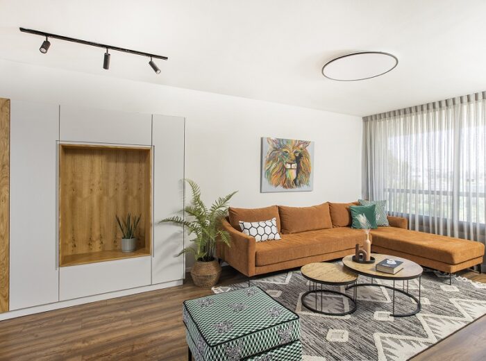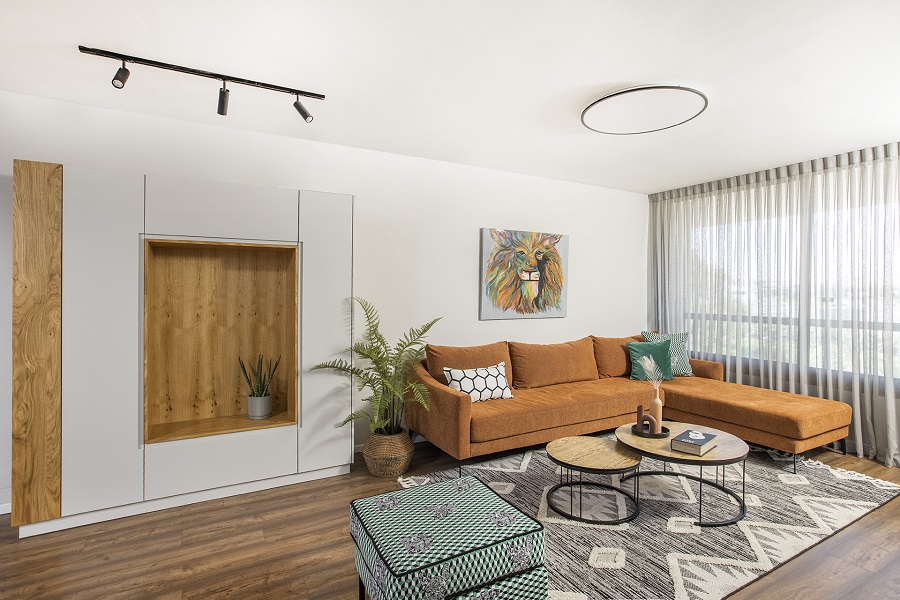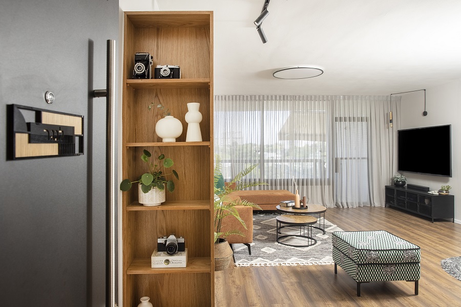 הלקוחה, אושיית אינסטגרם ופעילה ברשתות החברתיות, הגדירה למן התחלת התהליך שתי בקשות – האחת – הדירה צריכה להיות שימושית לה על כל פינותיה ועל אף שיש בה חדר מיותר שלא בשימוש, היא לא תרצה להסב אותו לחדר עבודה אלא ביקשה שאתכנן עבורה פינת עבודה שתהווה מרכז העניינים שבה תוכל לעבוד ובו זמנית להיות קשובה לרחשי הבית.