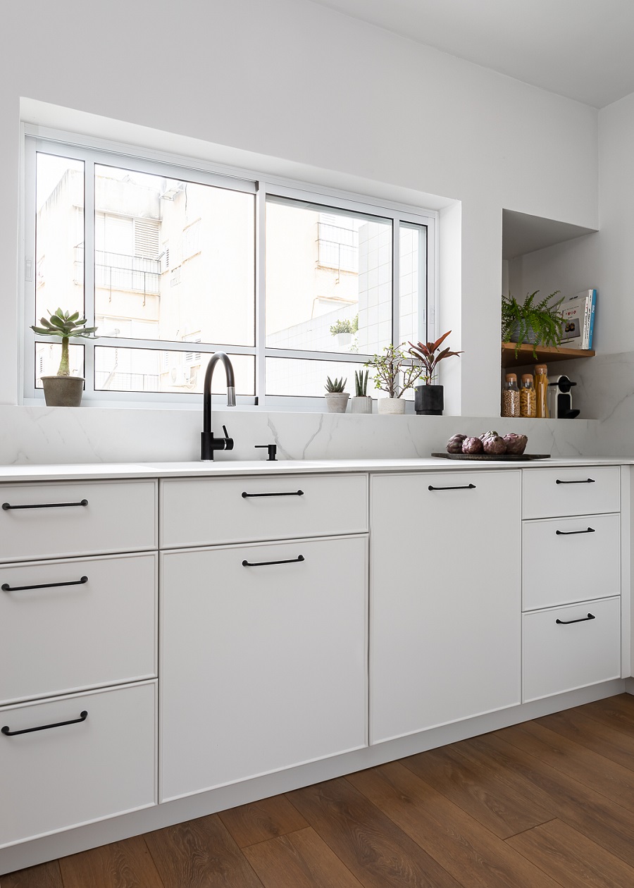 הפרקט הישן הוחלף, כמו כן חלון המטבח וכמובן כל הרהיטים, התאורה והחשמל בהתאמה לתכנון החדש.