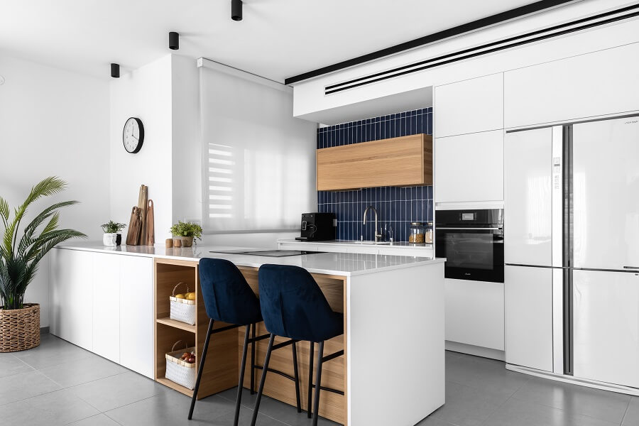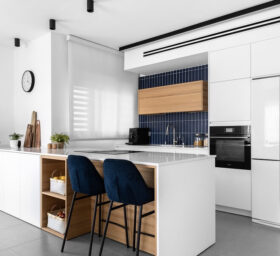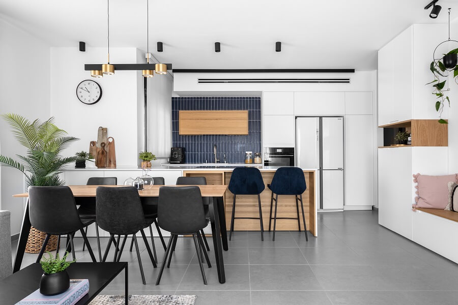 מעצבת הפנים הילה אריאלי מספרת על פרויקט מהנה במיוחד. "הלקוחות היו מהממים וזרמו עם הרעיונות שלי," היא אומרת. "בעזרת צבע הצלחנו להעניק לבית מראה שונה ומיוחד. פרט הנגרות בסלון הוא אחד הדברים האהובים עלי וגם החיפוי הכחול במטבח".