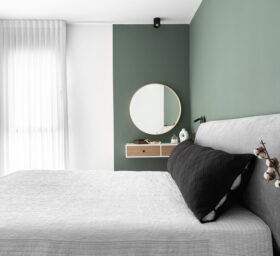 מלבד החלל הציבורי, הדיירים ביקשו להשקיע בעיצוב חדר השינה שלהם. החדר עוצב באווירה של בית מלון, והוא כולל מיטה מרופדת שמשני צדדיה יש שידות לילה ותאורת קיר. בנוסף, תוכננה פינת איפור מפנקת עם יחידת אחסון ותאורה מתכווננת. להשלמת המראה, שולבו בחדר פרטי טקסטיל נעימים