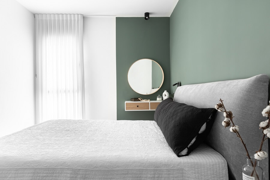 ונגיעות צבע מרגיעות. מאחר שבני הזוג עובדים מהבית, תוכנן עבורם גם חדר עבודה נוח שמשמש אותם לסירוגין.