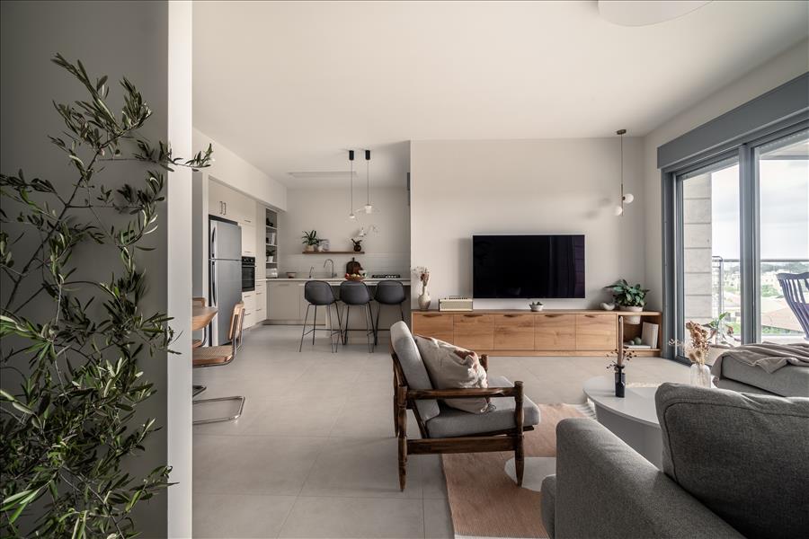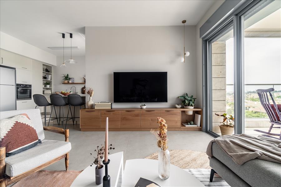 המטרה הייתה ליצור חלל שקט, נעים ומאוזן עם נגיעות עץ וגוונים טבעיים. כל פינה בדירה תוכננה בקפידה, כדי שכל סנטימטר ינוצל באופן מיטבי