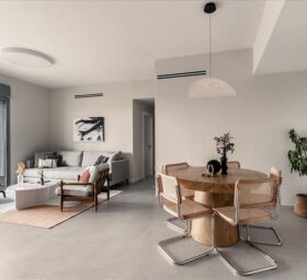 הדירה הזו שבהוד השרון היא דירה של שקט, איזון ושלווה. חפה מאלמנטים קישוטיים, שנותן פרשנות מינימליסטית ואישית במיוחד לסגנון המקומי, ששואב השראה מהסביבה הכפרית של כפר מלל הסמוך לבניין