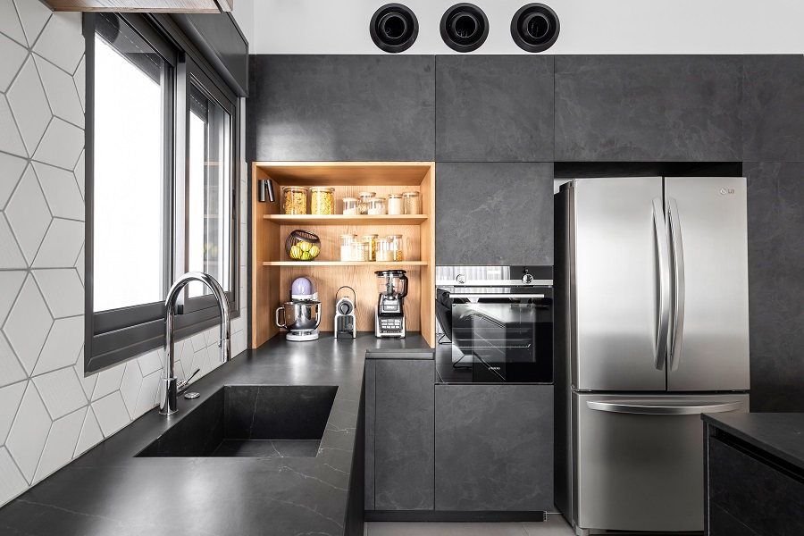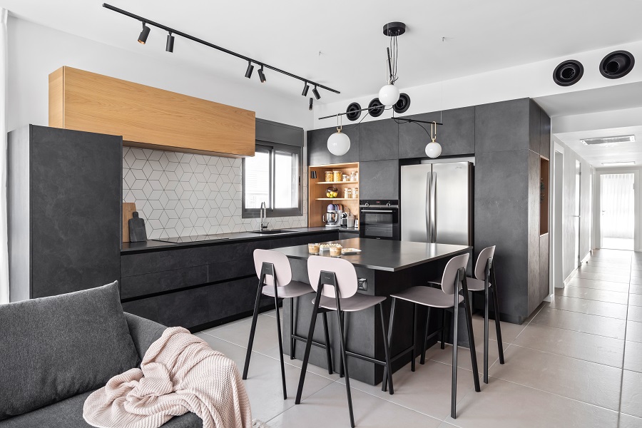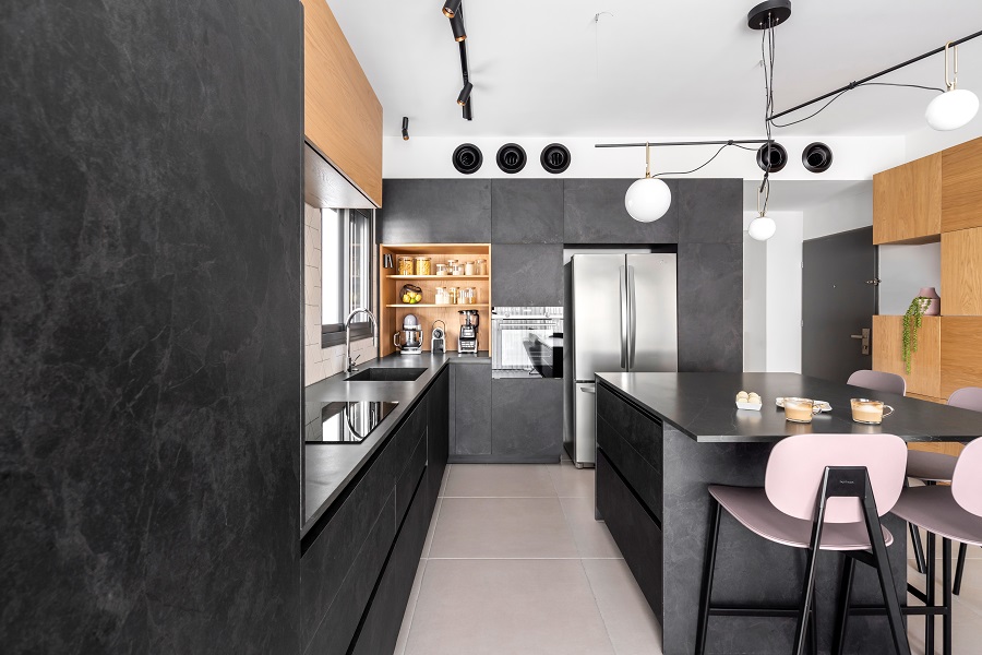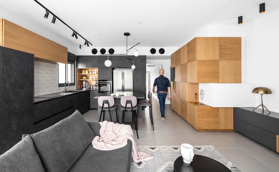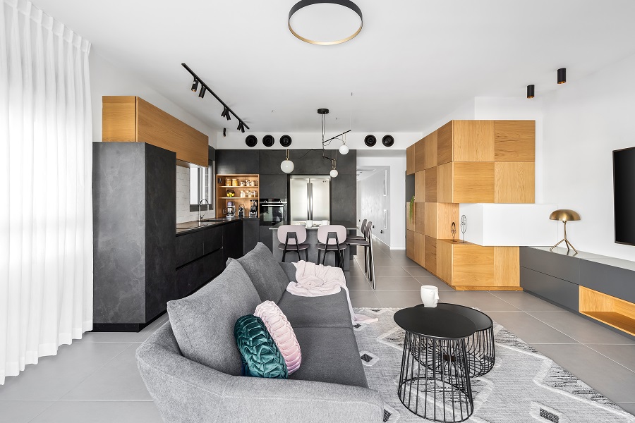 התקציב לא היה גבוה, ולכן השתמשנו ברוב הריצופים שהציע להם הקבלן של הפרויקט. את עיקר התקציב הוצאנו על נגרות מותאמת.