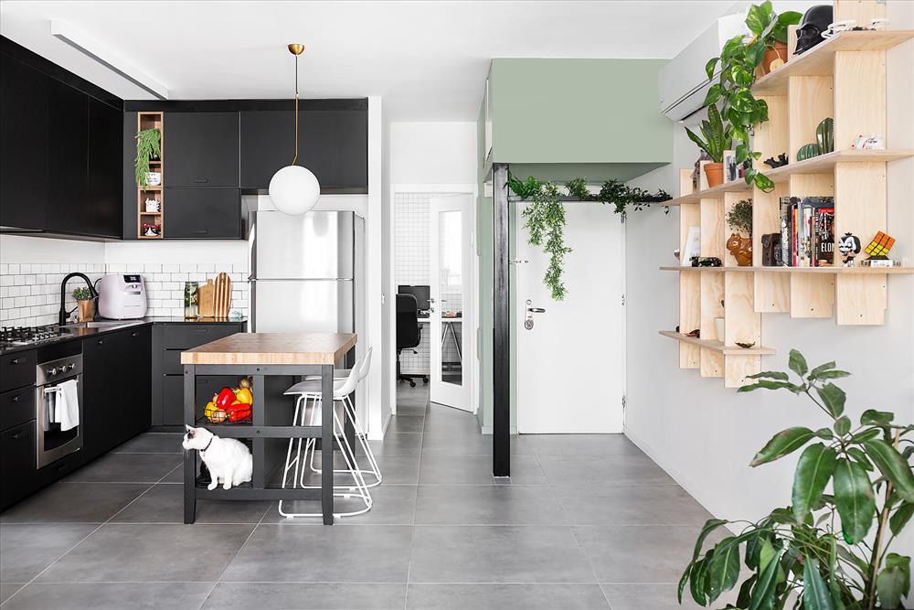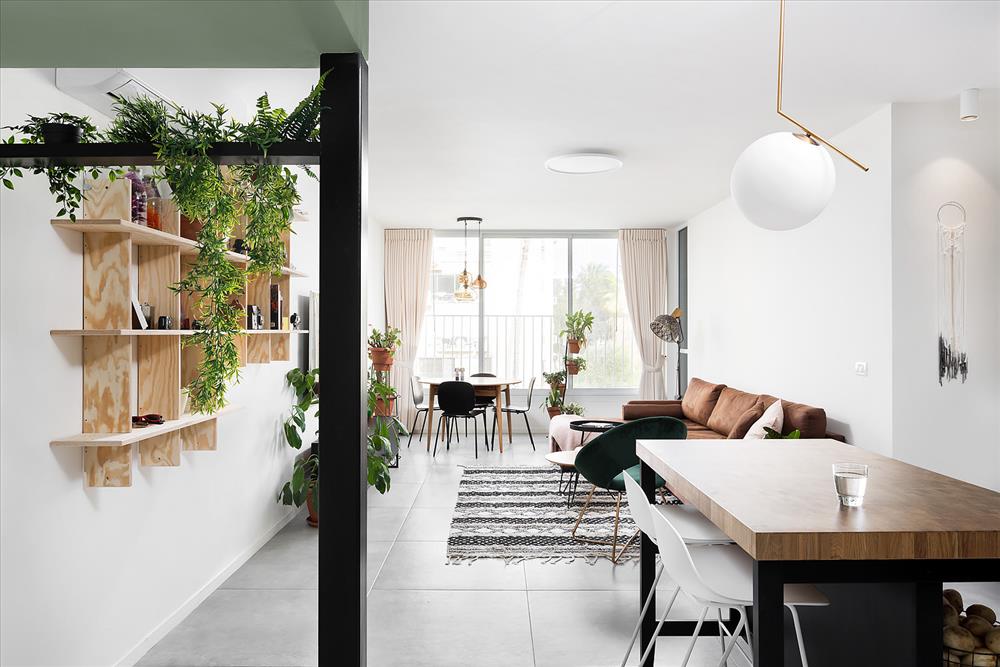 הדירה שינתה פניה מדירה ישנה, עם חדר מטבח נפרד ואחורי ומרפסת סגורה וחשוכה – לדירה פתוחה, שמחה, מוארת ובאופי שמייחד את בעליה.