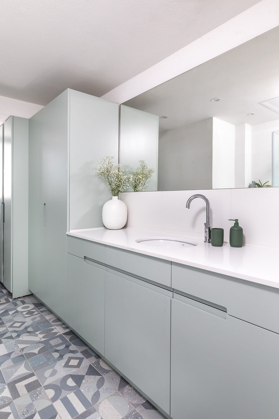 הדירה נרכשה ע"י הלקוחות טרם בחירת ריצוף, מטבח, חיפויים וכלים סניטריים. התכנון והליווי החלו בשלב מאוד מוקדם וכשנתיים טרם קיבלו הלקוחות מפתח.